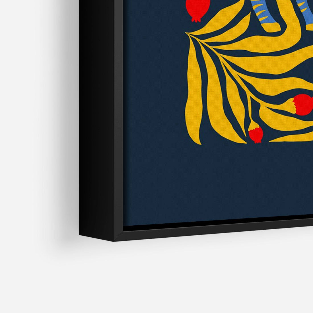 Ta nowoczesna sztuka przedstawia zebrę na granatowym tle, w otoczeniu żółtych roślin. Kompozycja tworzy wyjątkowy kontrast między zwierzęciem a roślinami, zachęcając do odkrywania piękna natury w nowatorski sposób.