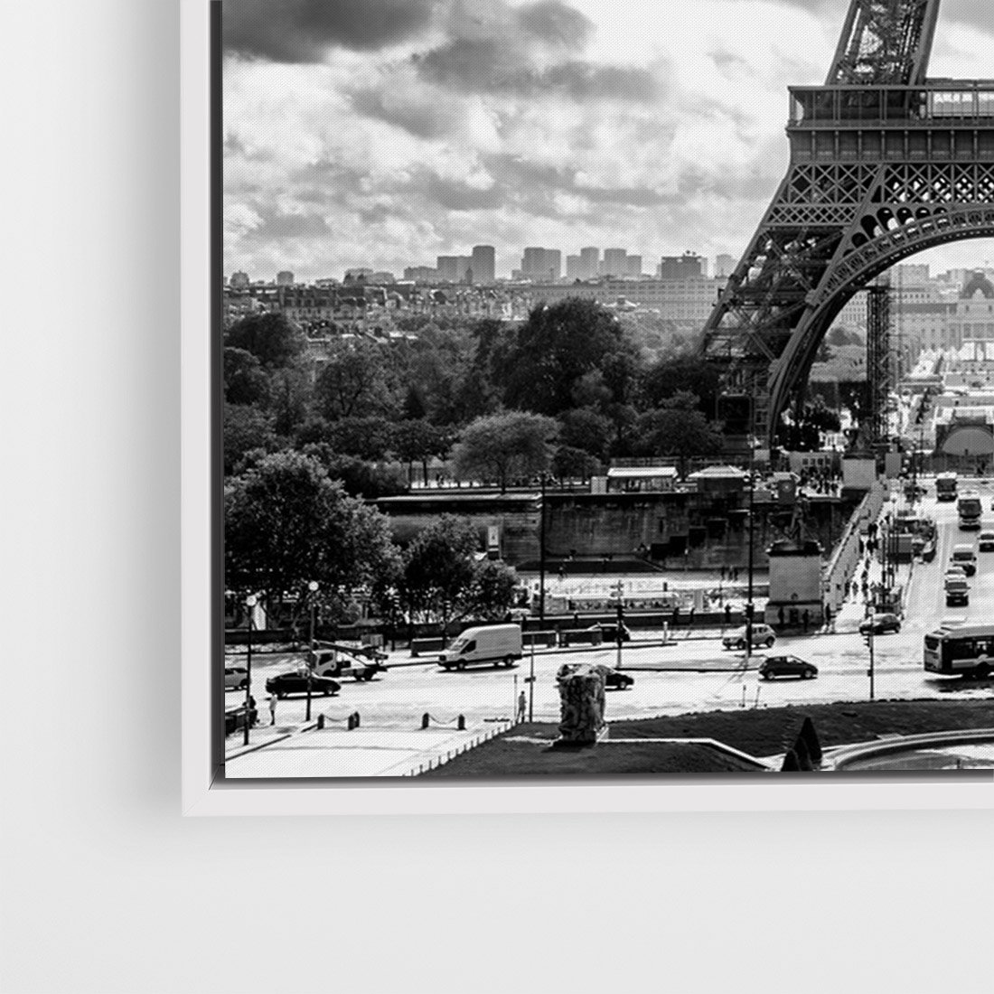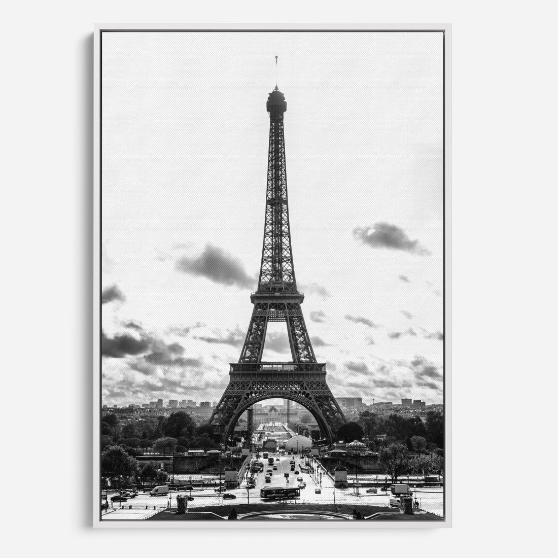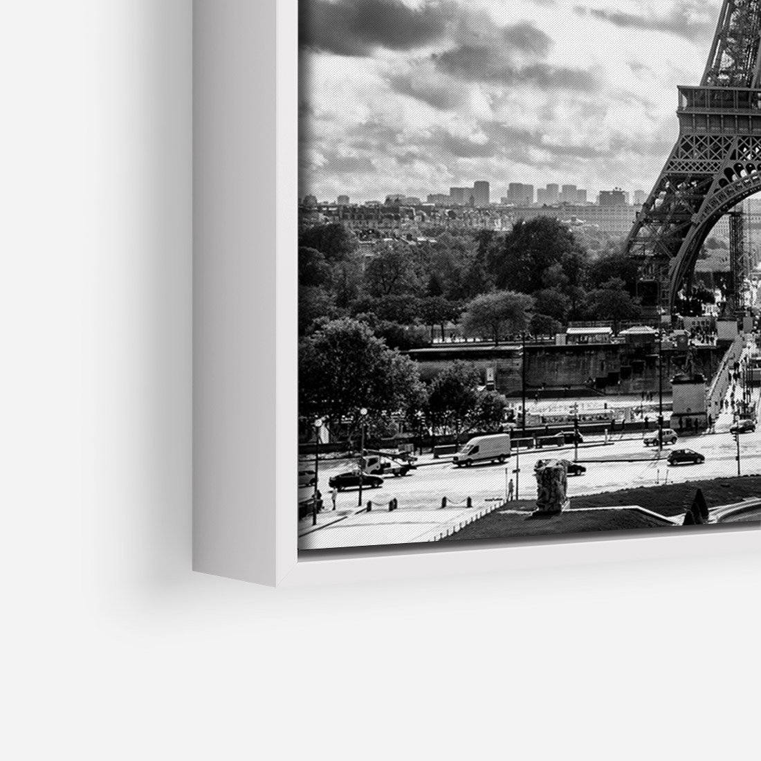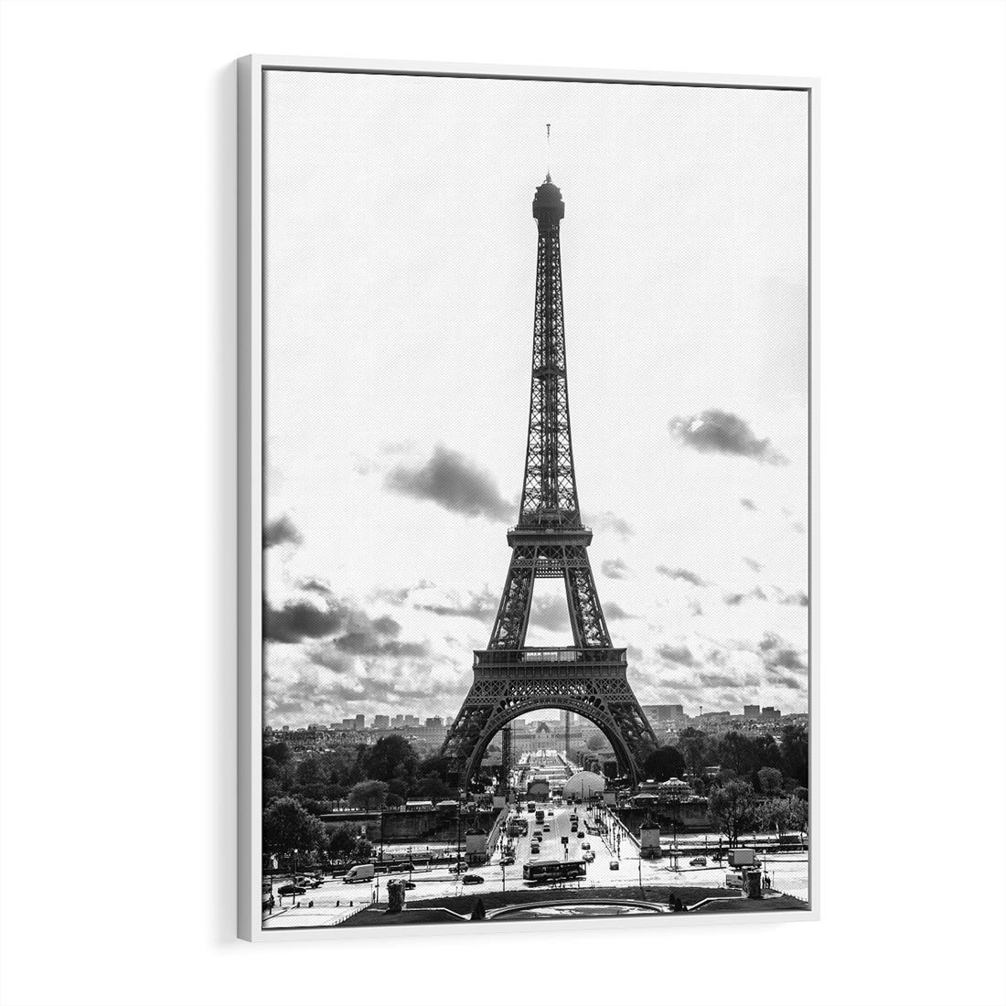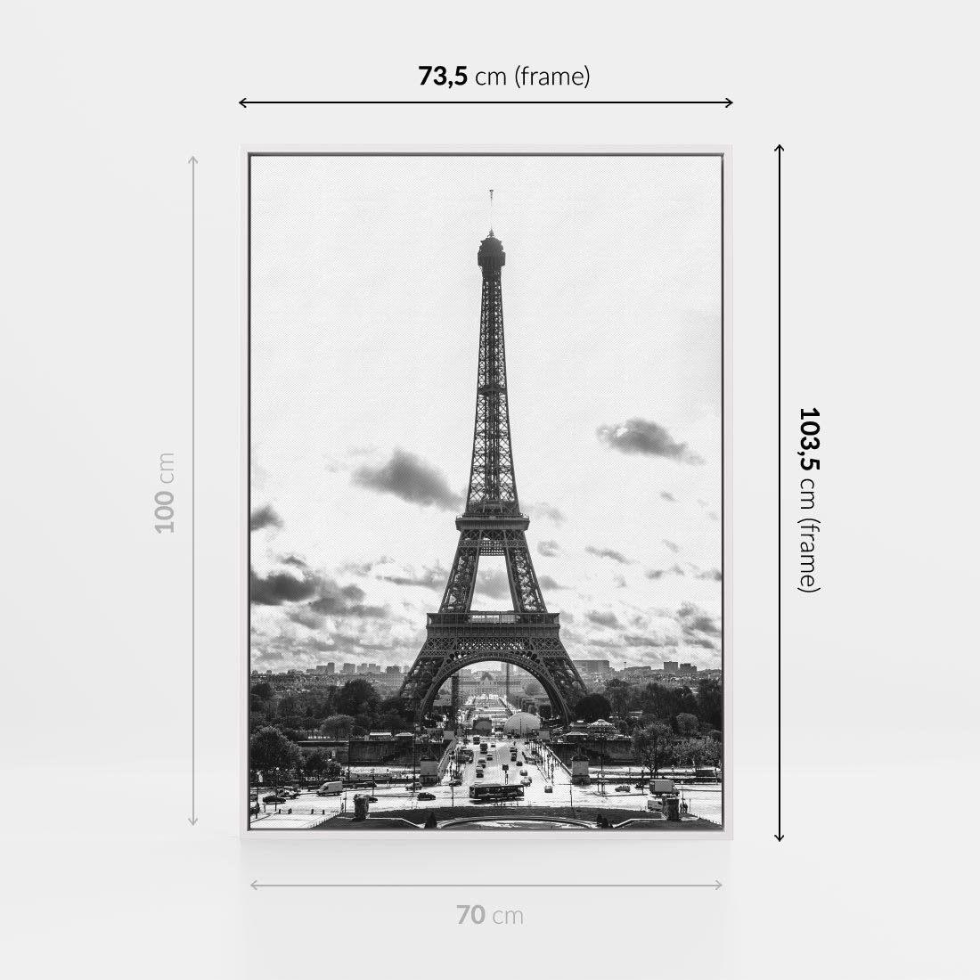 Obraz w ramie 70x100 - Wieża Eiffla - czarno białe zdjecie, wieża eiffla - rama biała