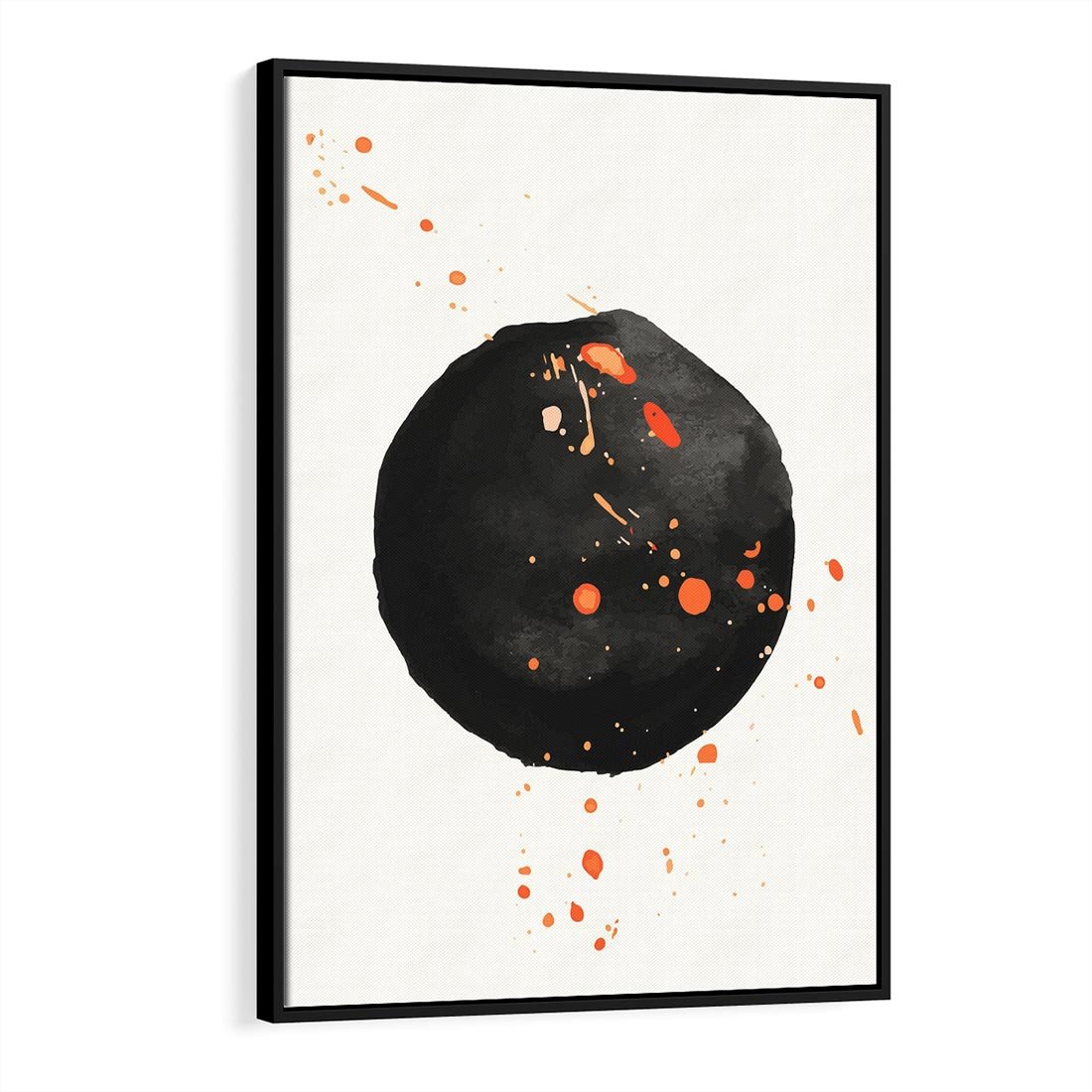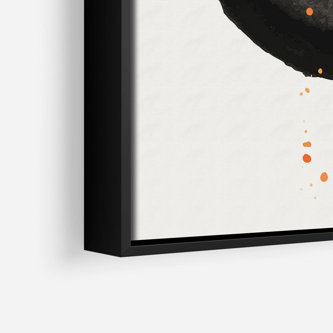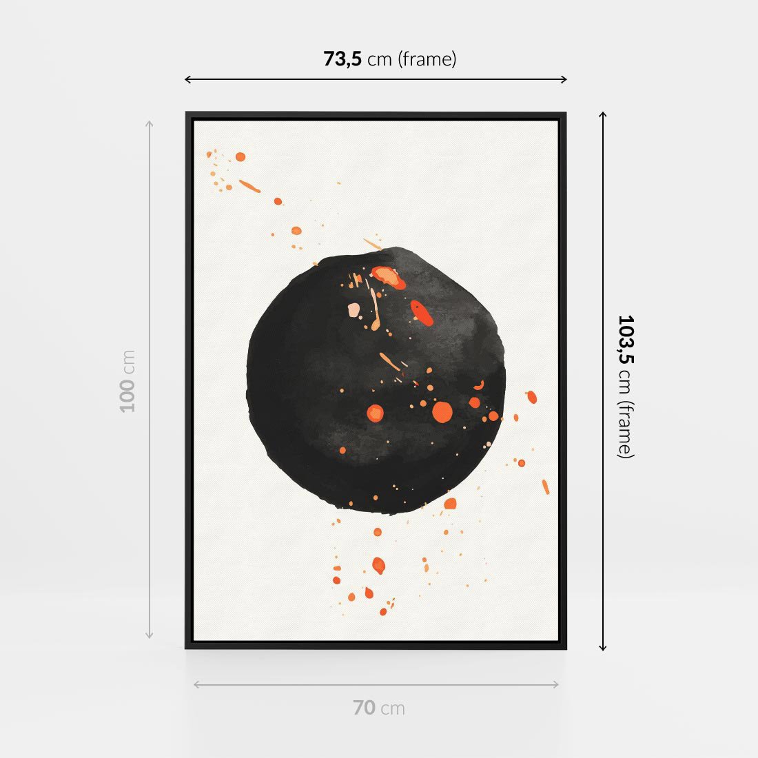 Obraz w ramie 70x100 - Wnętrza Marzeń - abstrakcyjna czarna plama, rozsiane pomarańczowe kropki - rama czarna
