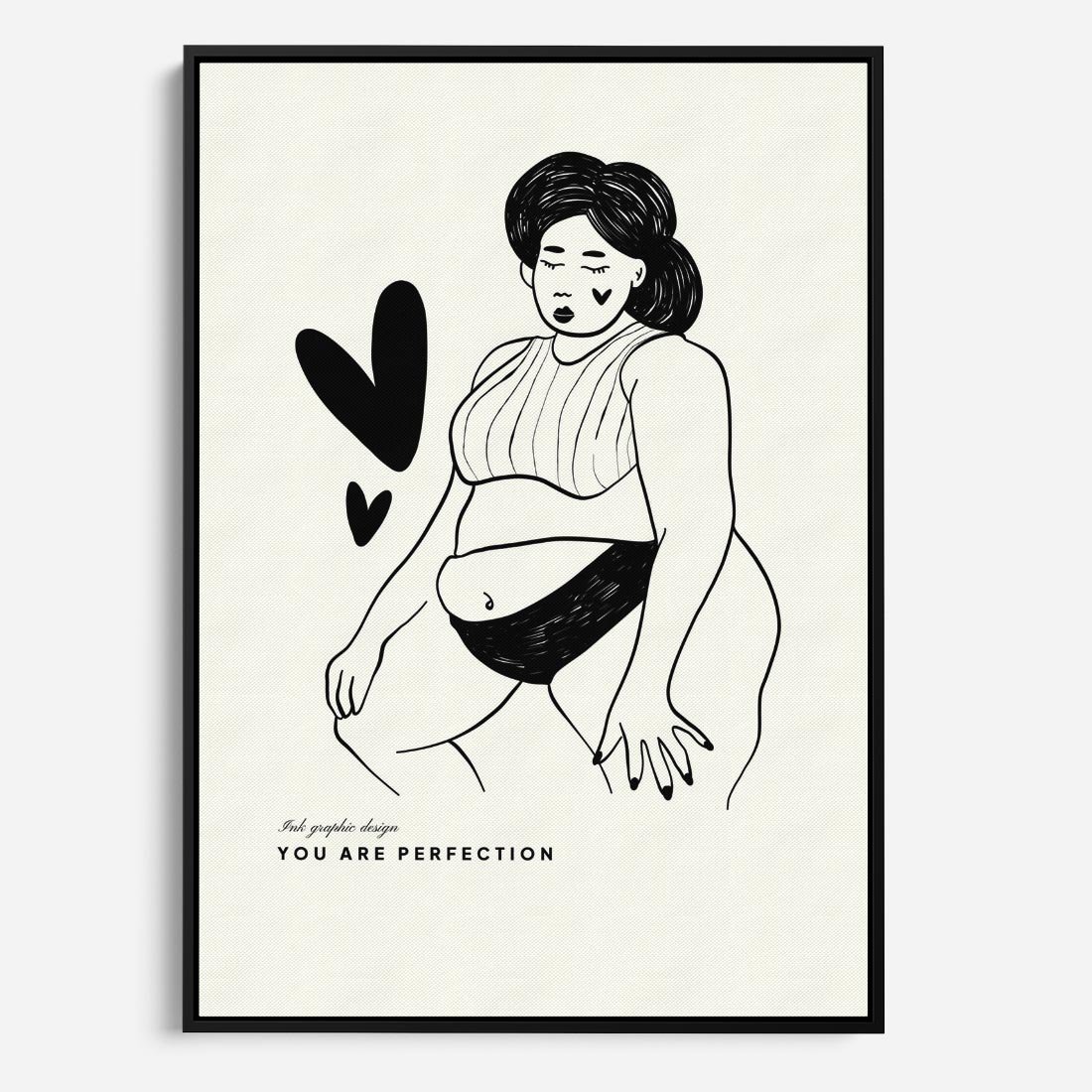 Ta sztuka rysunkowa ukazuje piękno kobiecej sylwetki w bieliźnie. Wzbogacona wyrazistą typografią, przypomina o sile wyrażania indywidualnego piękna i pewności siebie.
