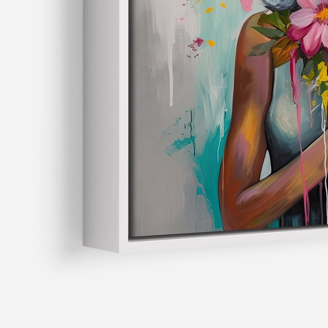 Obraz w ramie 70x100 - Z Głową w Kwiatach - obraz olejny, sztuka nowoczesna - rama biała