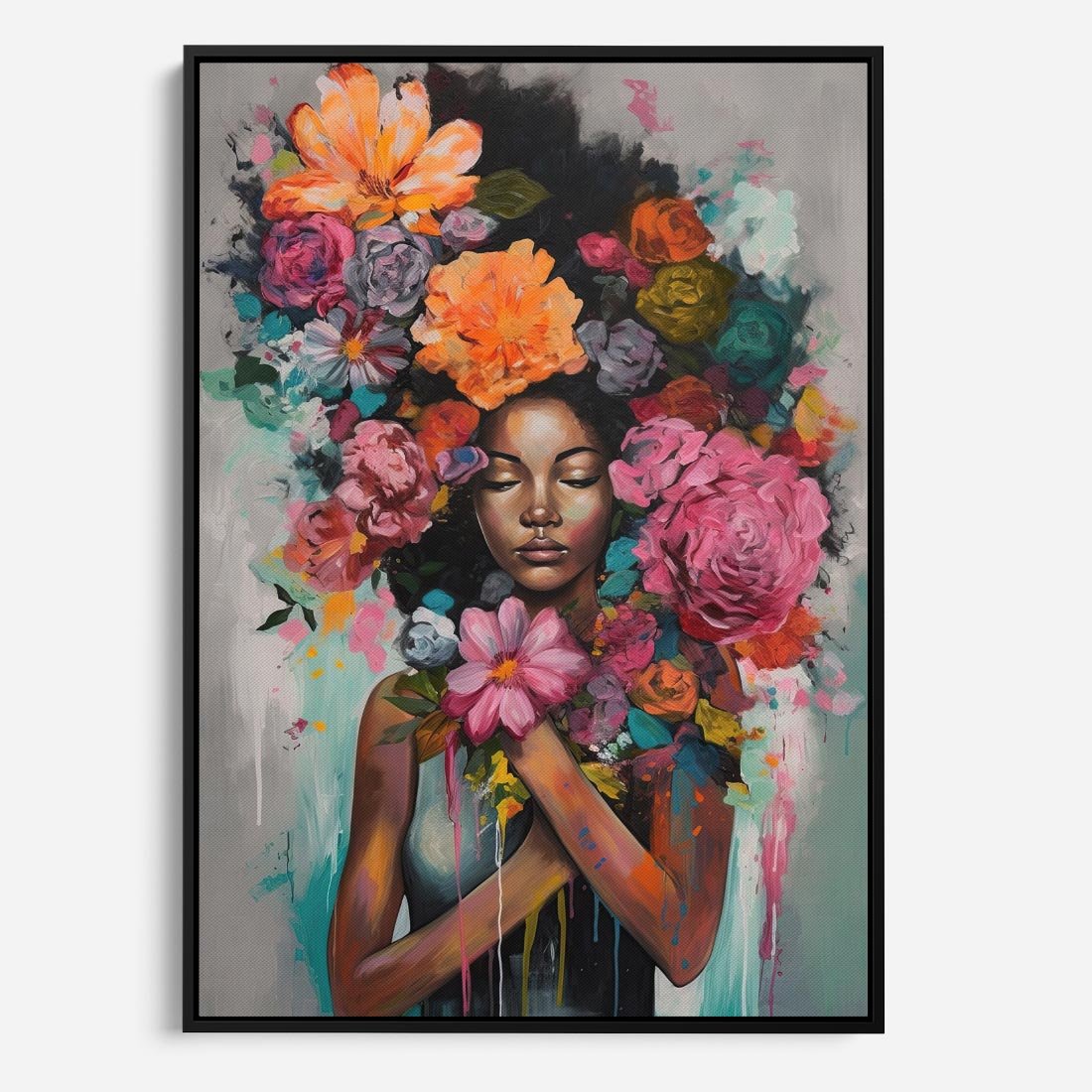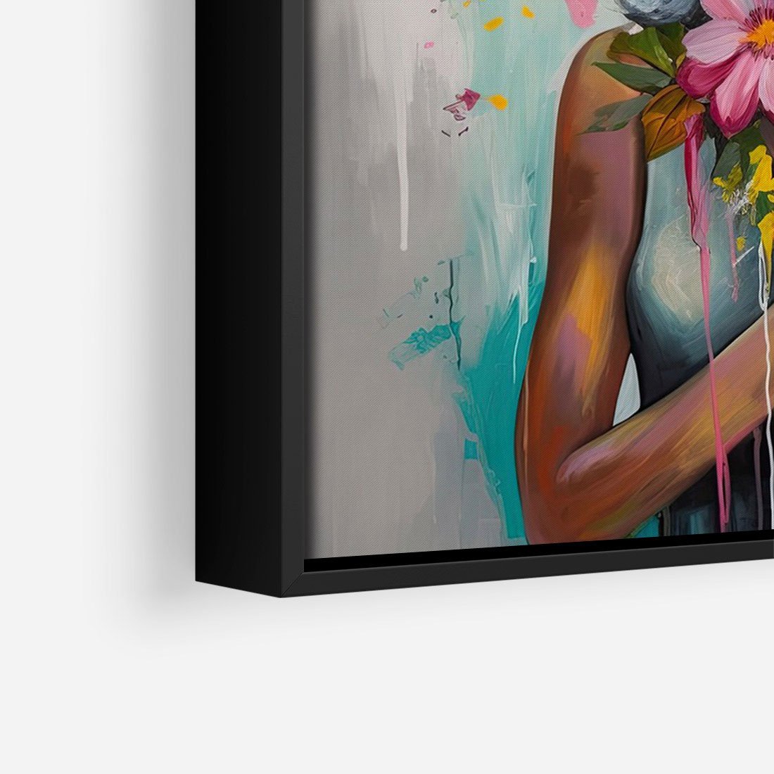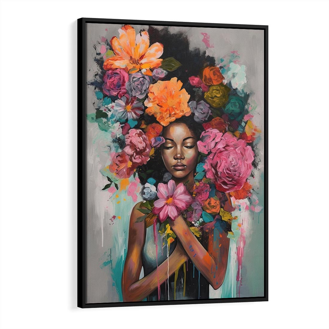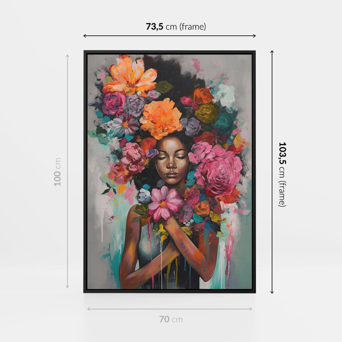 Obraz w ramie 70x100 - Z Głową w Kwiatach - obraz olejny, sztuka nowoczesna - rama czarna