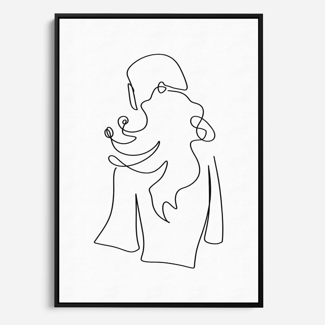 Obraz w ramie 70x100 - Zaklęte Linie - szkic kobiety, jedną linia - rama czarna