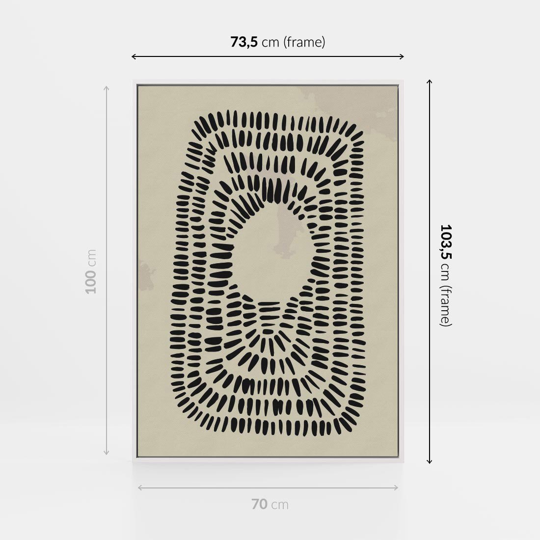 Obraz w ramie 70x100 - Zaklęte Wnętrza - boho plakat, czarne kropki kreski - rama biała