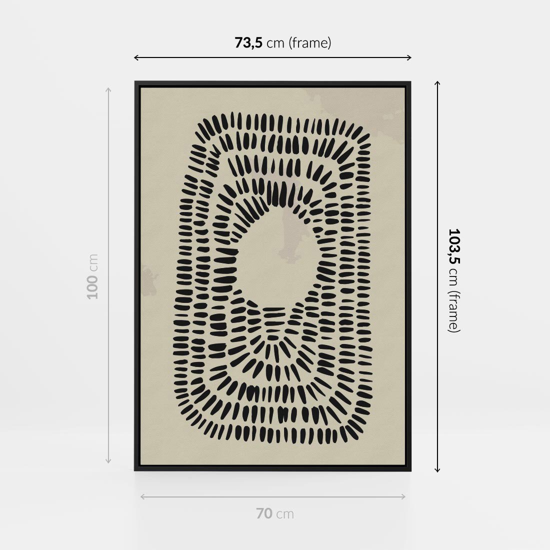 Obraz w ramie 70x100 - Zaklęte Wnętrza - boho plakat, czarne kropki kreski - rama czarna