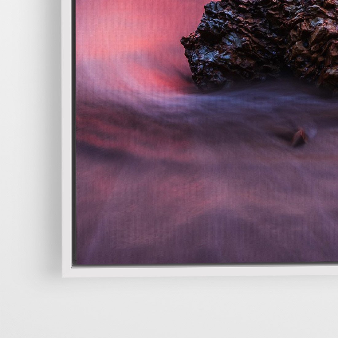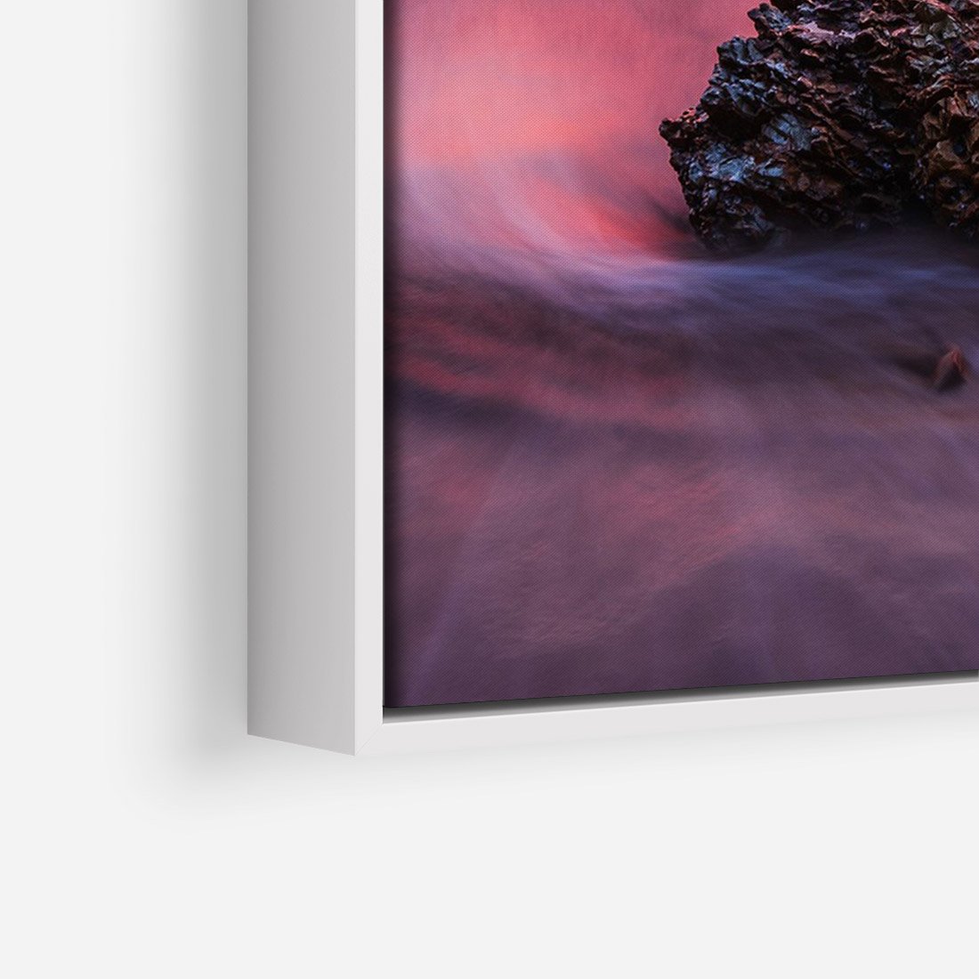 Obraz w ramie 70x100 - Zaklęty Zachód - magiczny zachód słońca, fioletowe - rama biała