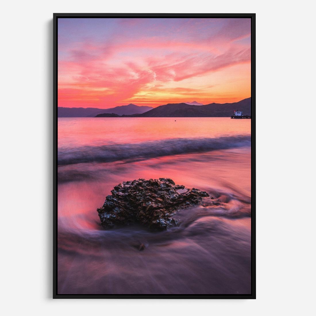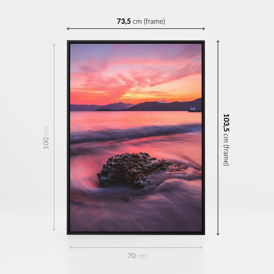 Obraz w ramie 70x100 - Zaklęty Zachód - magiczny zachód słońca, fioletowe - rama czarna