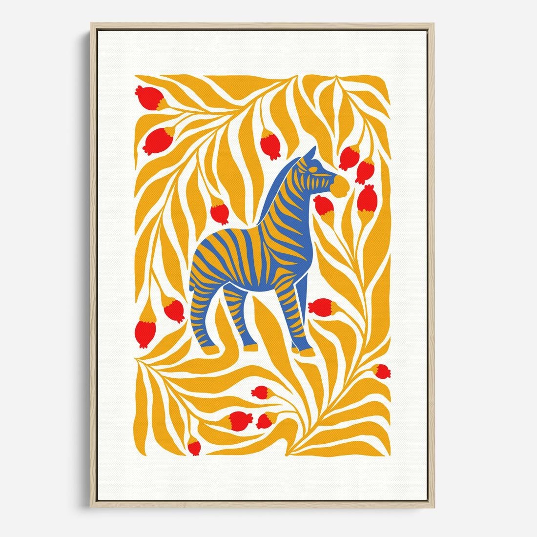 Ta unikalna abstrakcyjna grafika ukazuje zebrę w minimalistycznym stylu, w odcieniach żółtego i niebieskiego. Tworzy ona efektowną kompozycję, która wzbudza zainteresowanie i zachwyca nowoczesnym wyrazem.