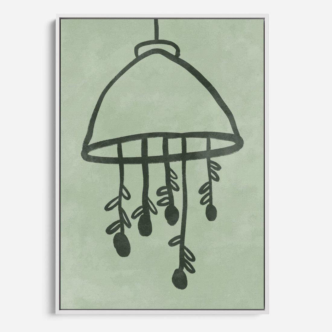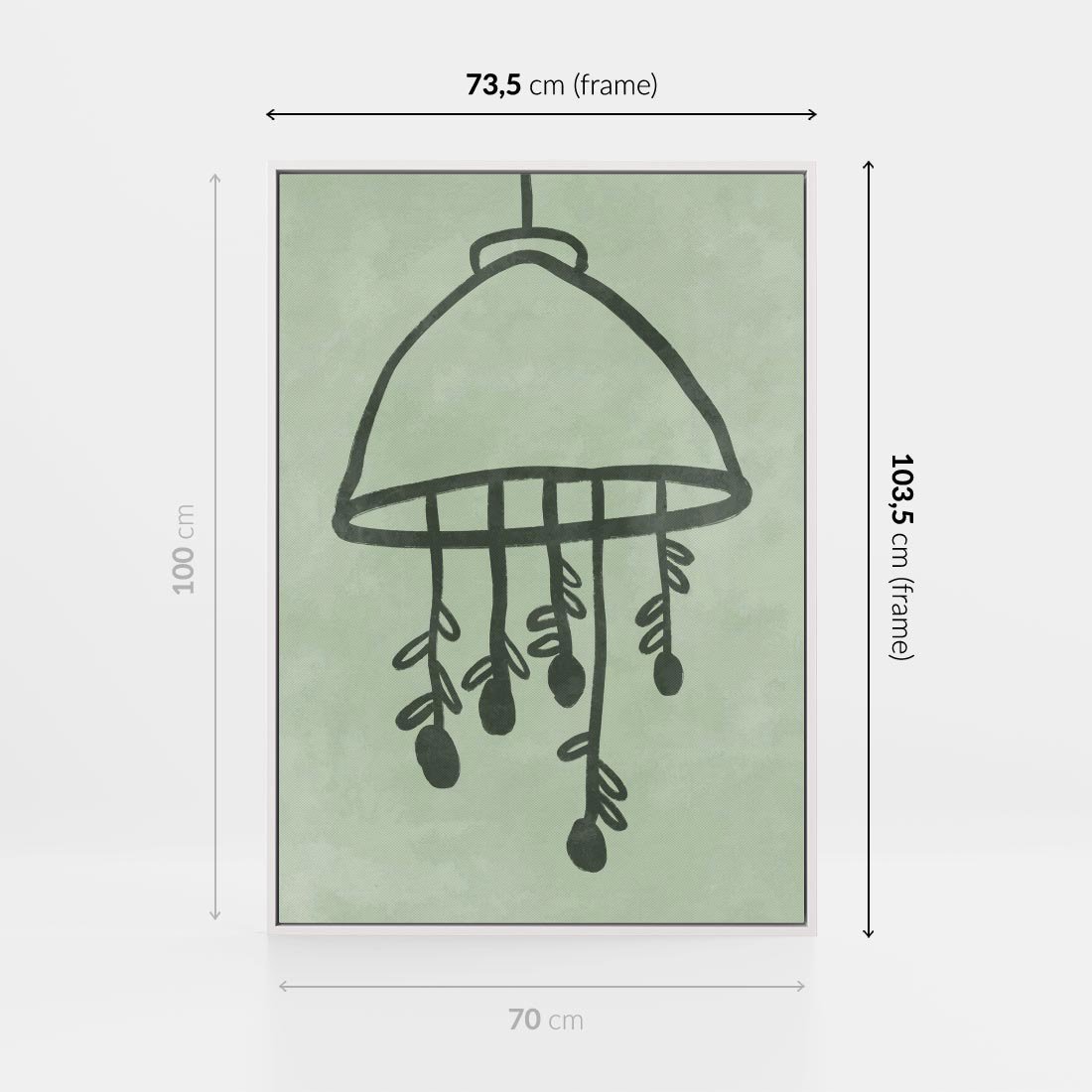 Obraz w ramie 70x100 - Zieleń Inspirującego Spokoju - plakat z abstrakcyjną zieloną lampą, skandynawski design - rama biała