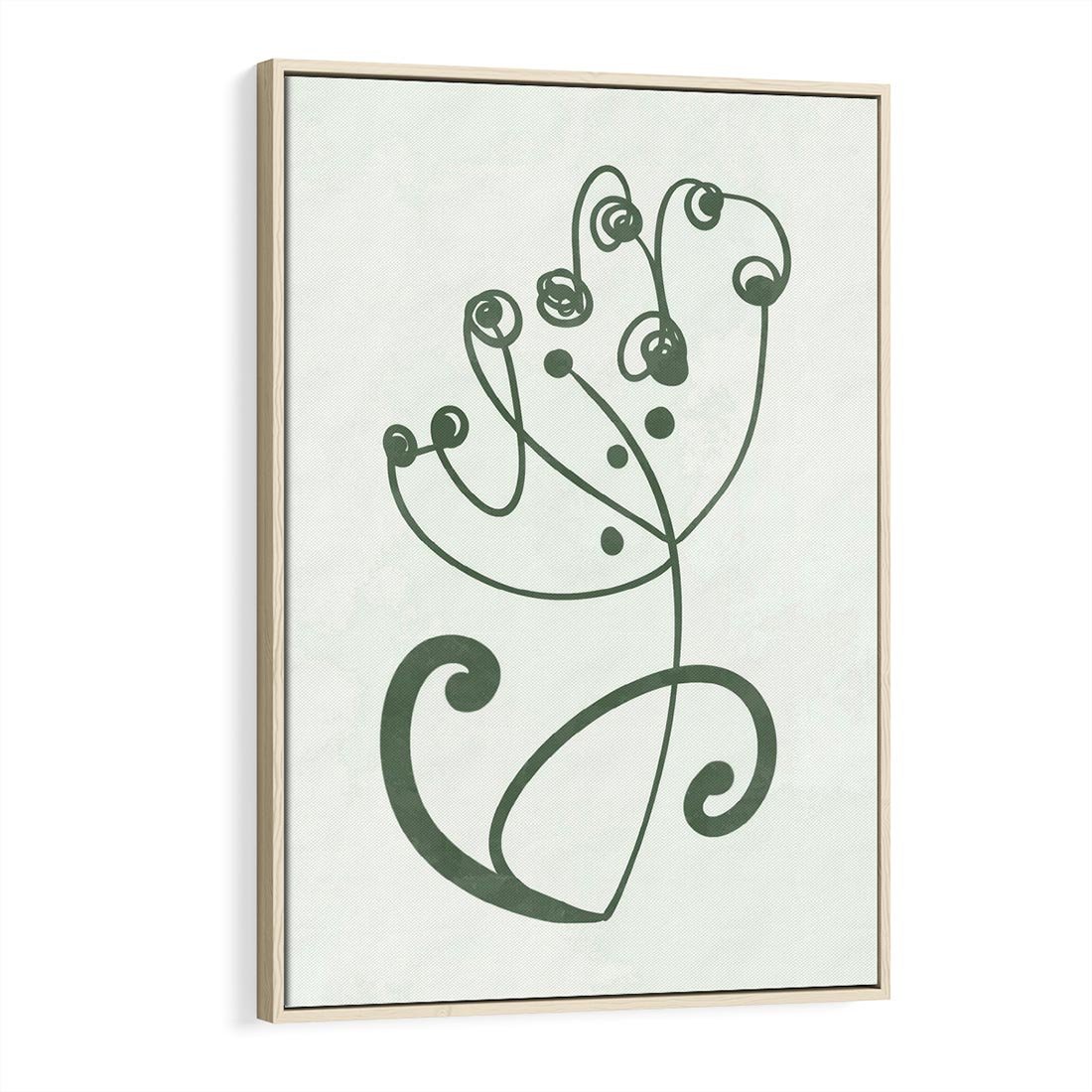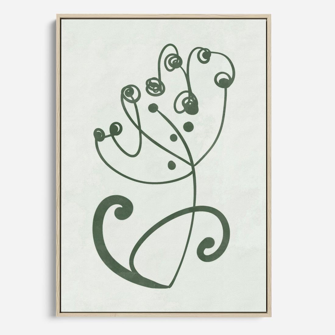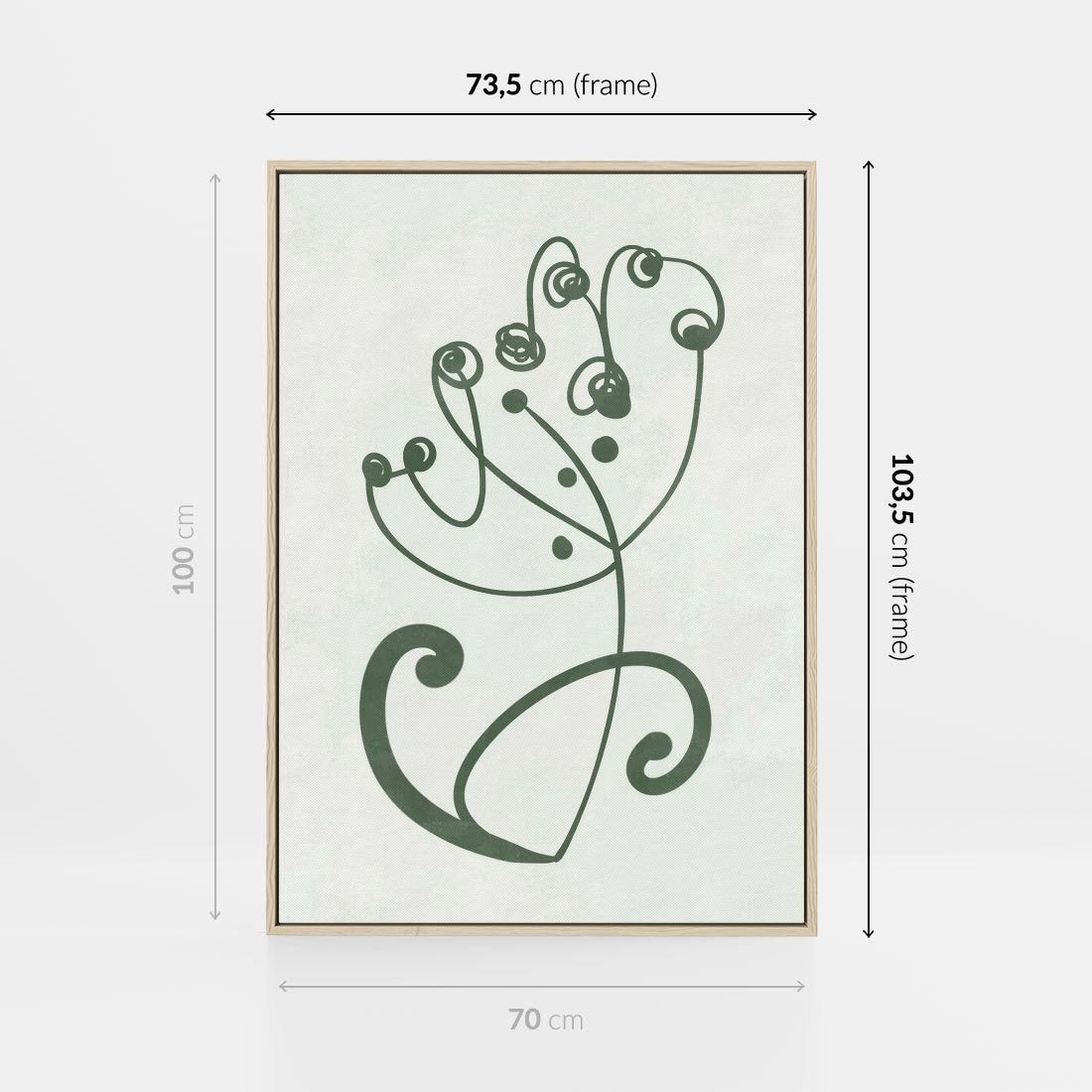 Abstrakcyjna sztuka w odcieniach zielonego. Minimalistyczne kompozycje przypominające roślinne formy tworzą harmonijny obraz natury i spokoju.