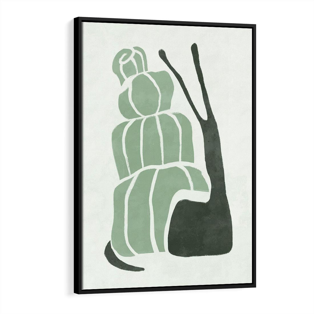 Obraz w ramie 70x100 - Zielona Równowaga - abstrakcyjny zielony ślimak, skandynawski design - rama czarna