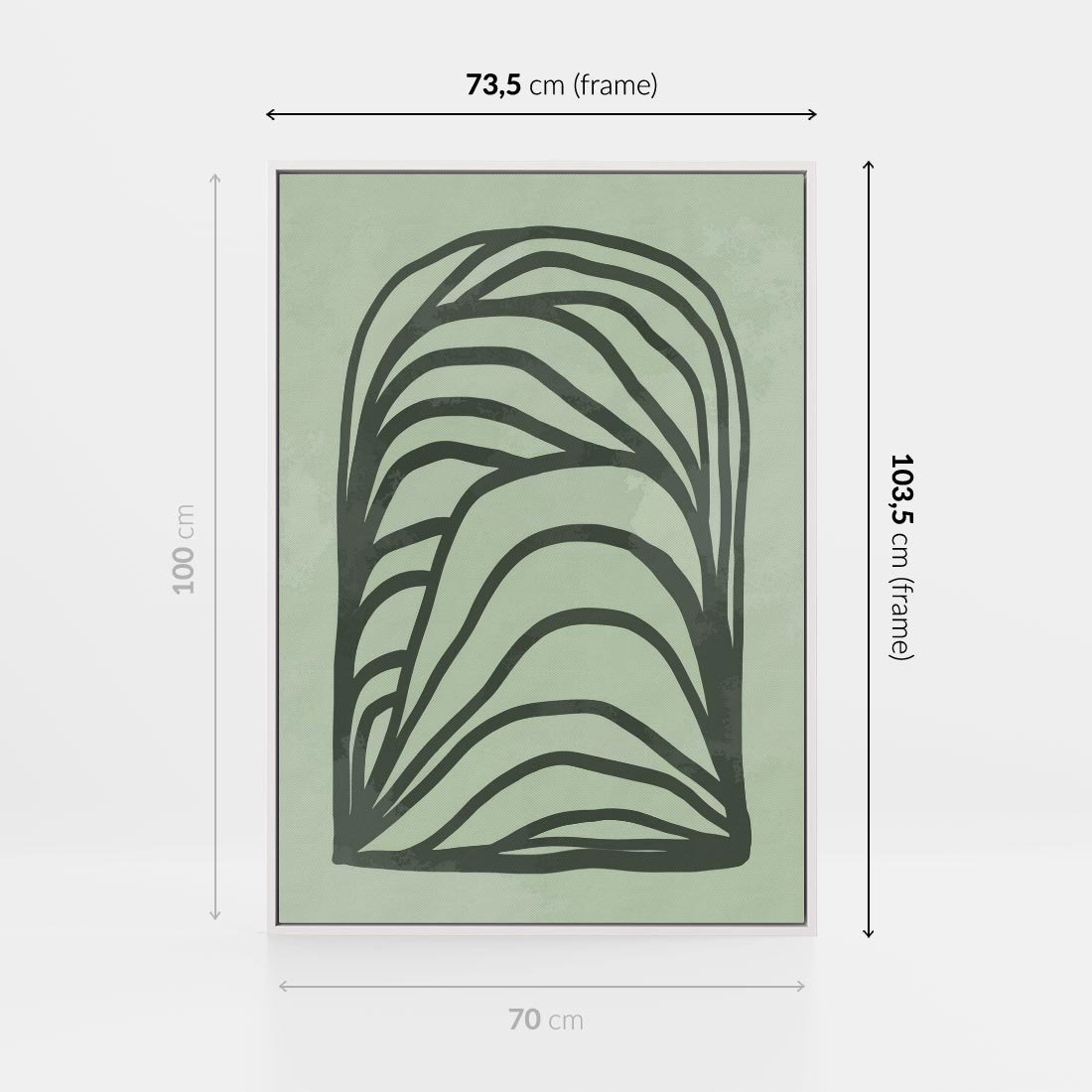 Obraz w ramie 70x100 - Zielonkawy Uścisk Natury - abstrakcyjny zielony motyw, skandynawski design - rama biała