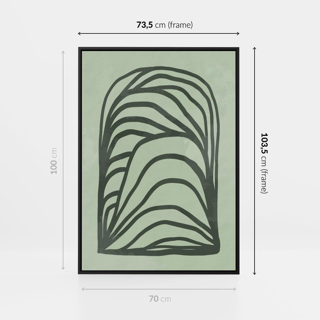 Obraz w ramie 70x100 - Zielonkawy Uścisk Natury - abstrakcyjny zielony motyw, skandynawski design - rama czarna