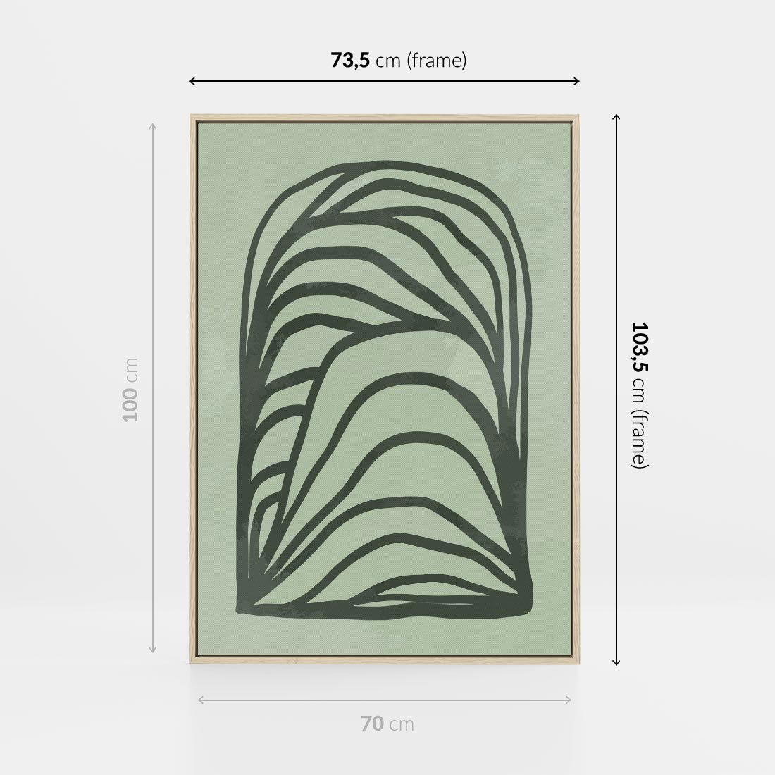 Obraz w ramie 70x100 - Zielonkawy Uścisk Natury - abstrakcyjny zielony motyw, skandynawski design - rama drewno