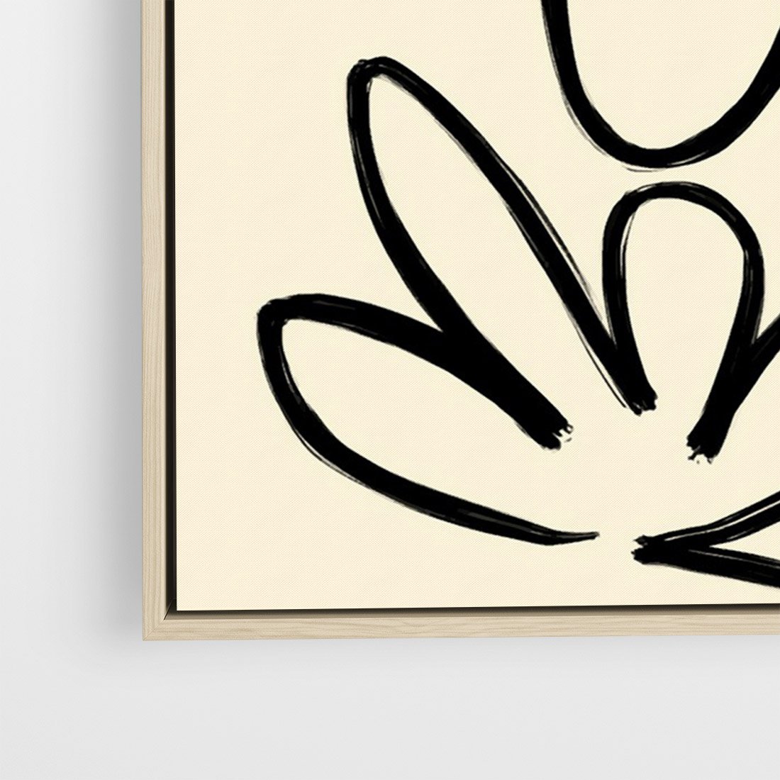 Nasza abstrakcyjna sztuka to delikatna kompozycja przypominająca kształtem kwiat. Wszystko to utrzymane jest w kontrastujących czerń i biel. To minimalizm w swojej najczystszej formie, gdzie subtelne linie tworzą elegancką i spokojną wizję, oddając hołd prostocie i pięknu.