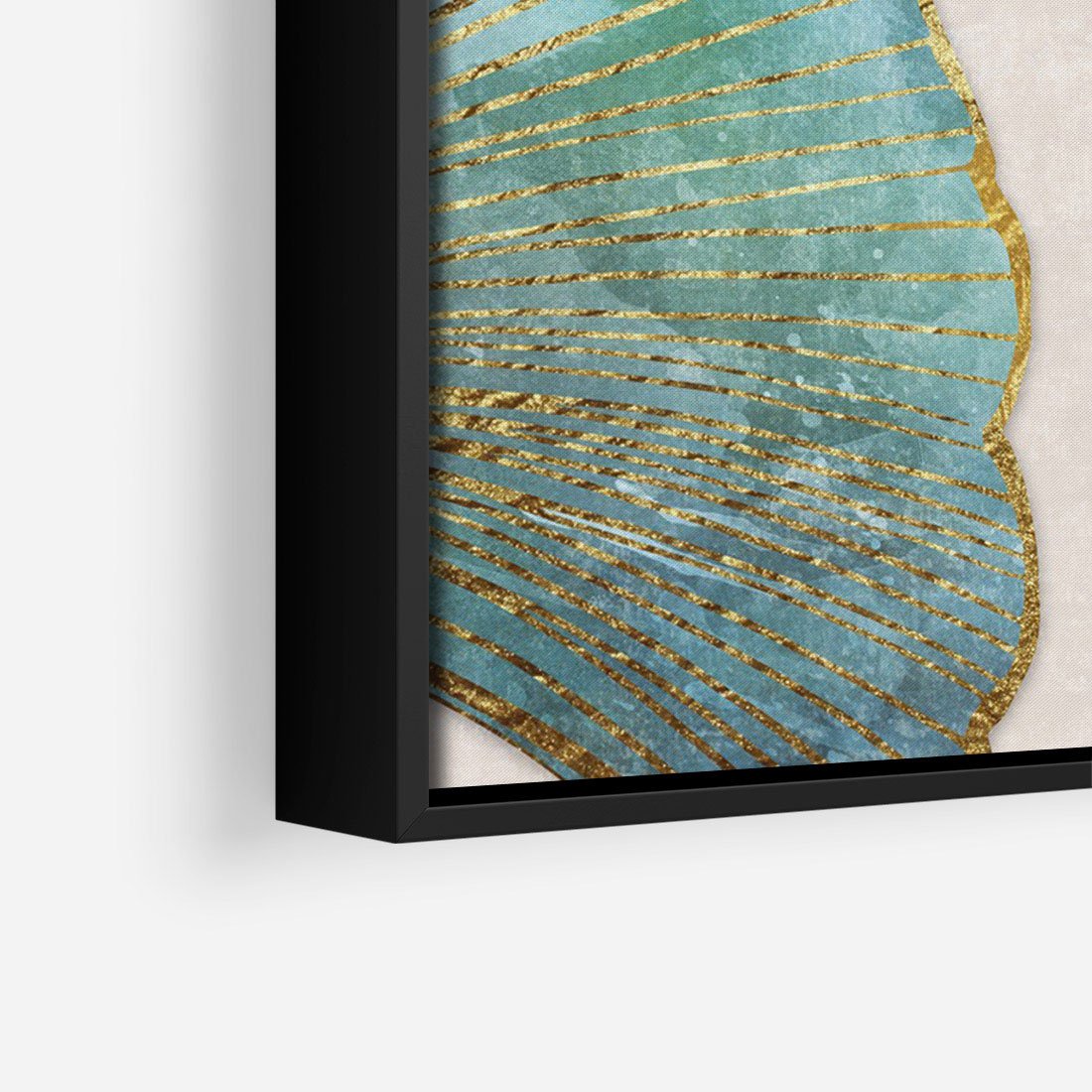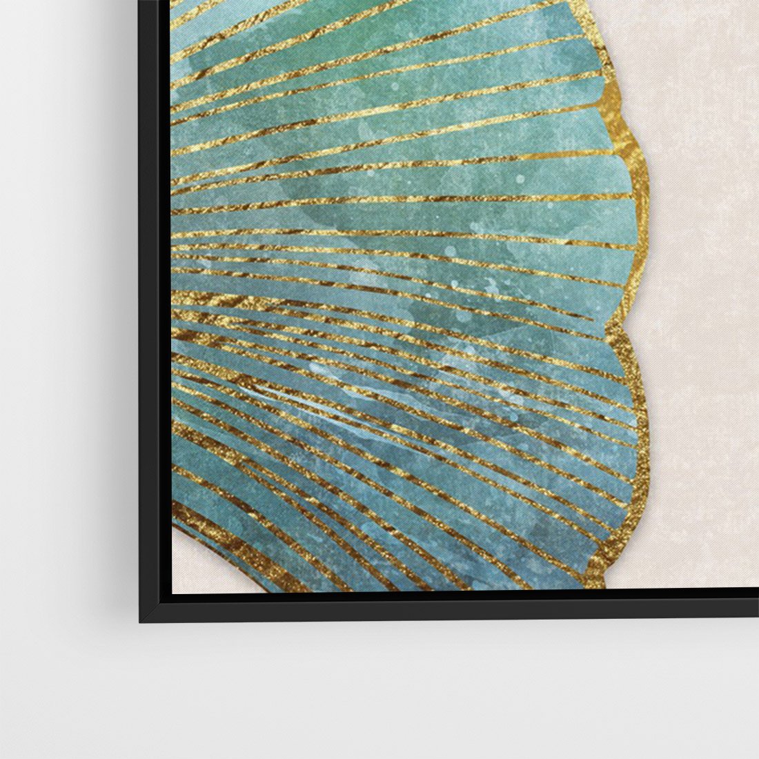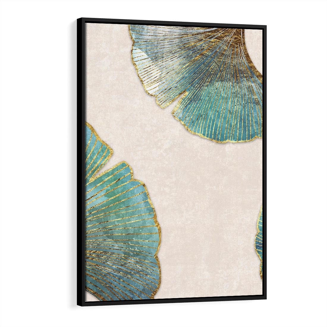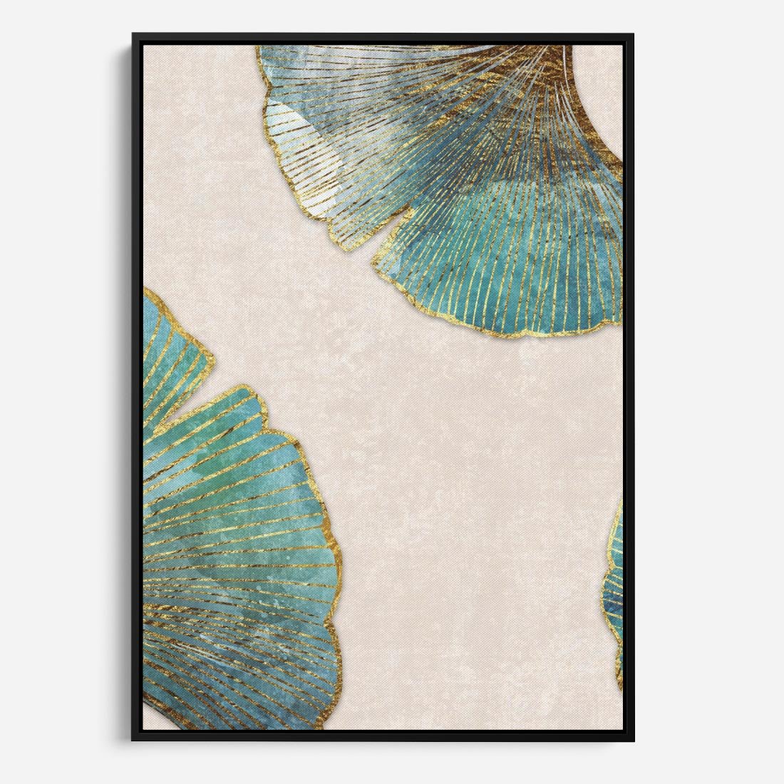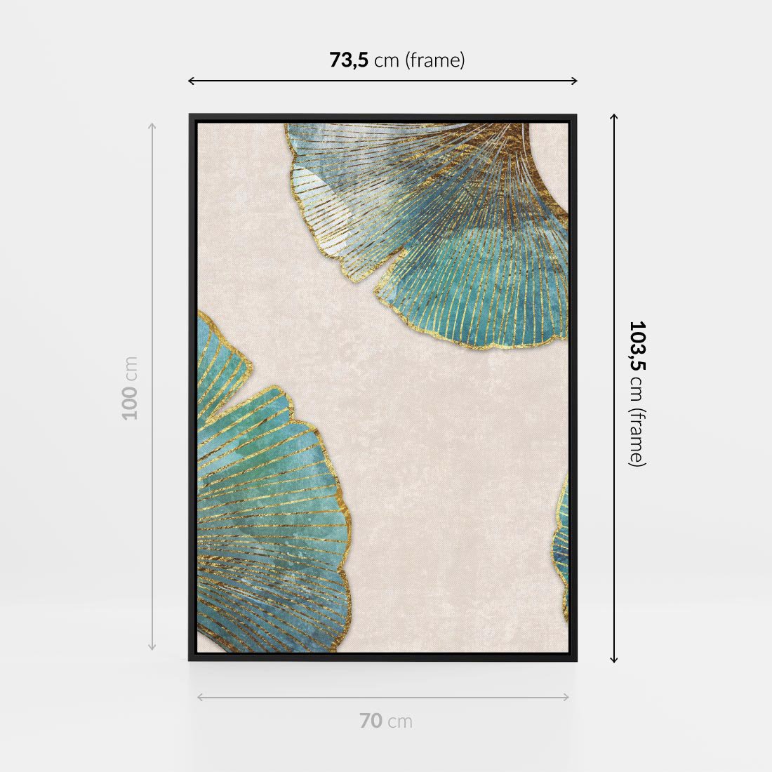 Obraz w ramie 70x100 - Złota Melodia Liści - złote, turkusowe liście miłorzębu - rama czarna