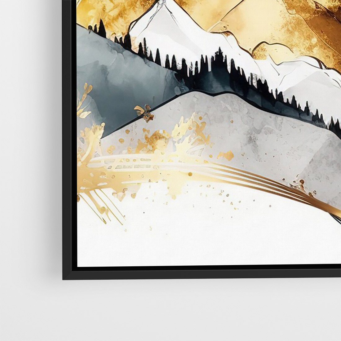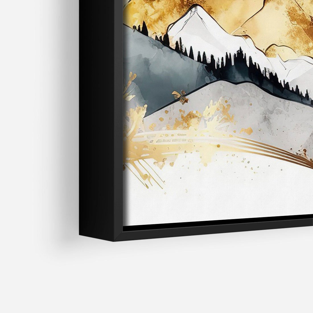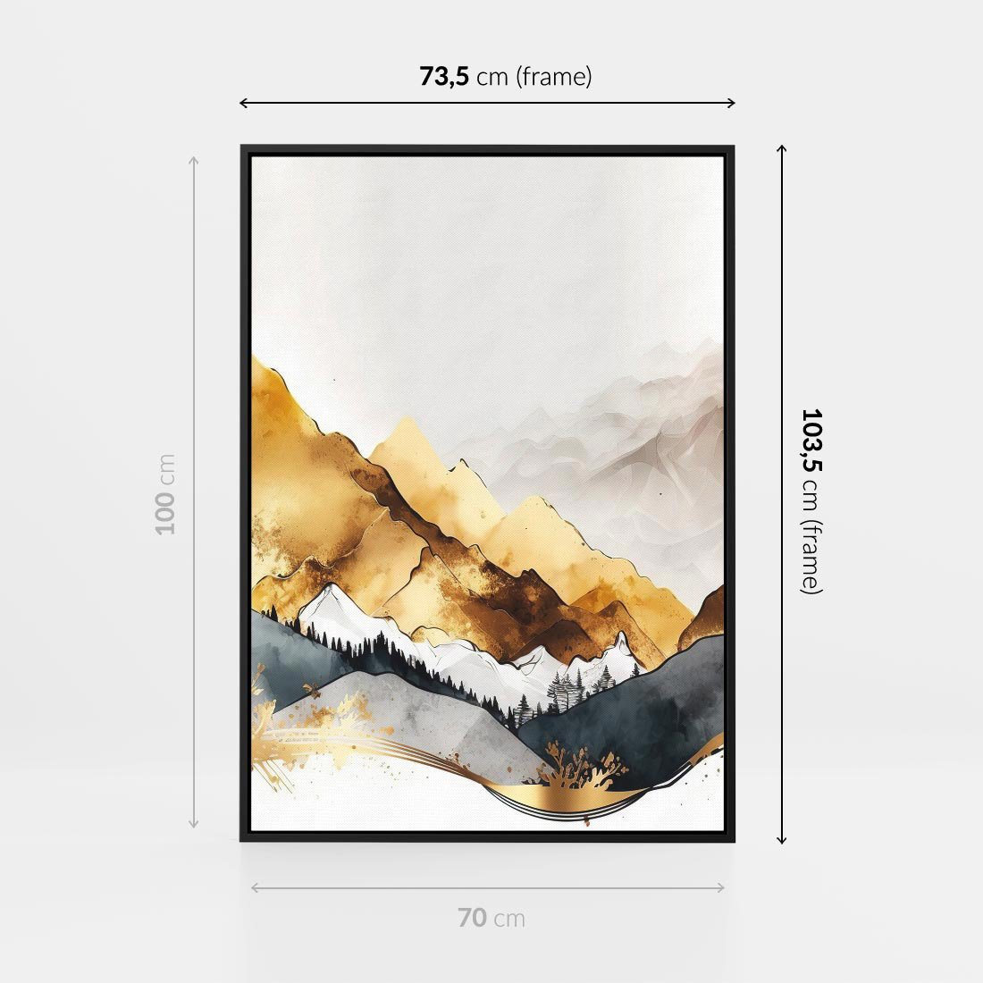 Obraz w ramie 70x100 - Złote Góry - akwarela, graficzne góry - rama czarna