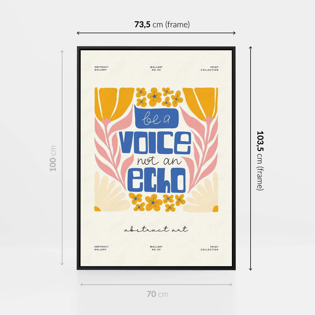 Ten nowoczesny plakat ukazuje kwiaty w harmonii z wyrazistą typografią, w odcieniach błękitu i żółci. Sztuka ta tworzy unikalną wizję estetyki, łącząc siłę słów z pięknem natury w odważnej i nowoczesnej kompozycji.