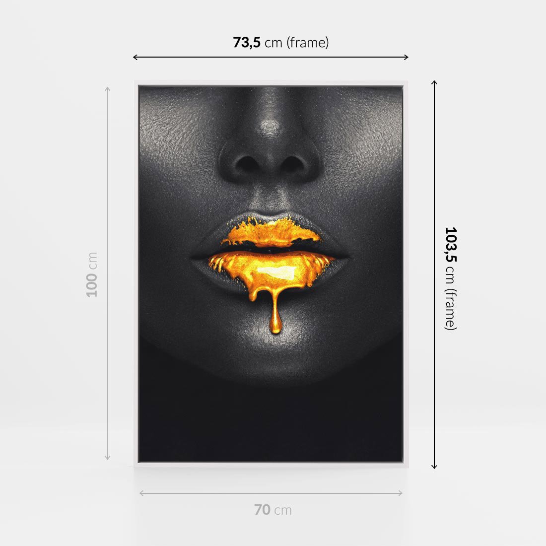 Obraz w ramie 70x100 - Złote Usta Kobiety - złote, usta - rama biała