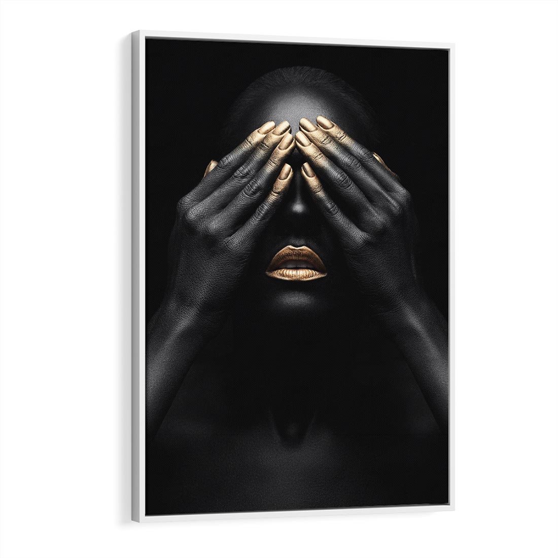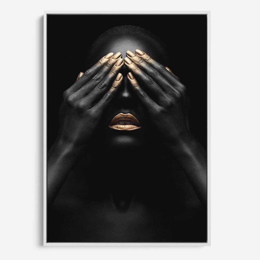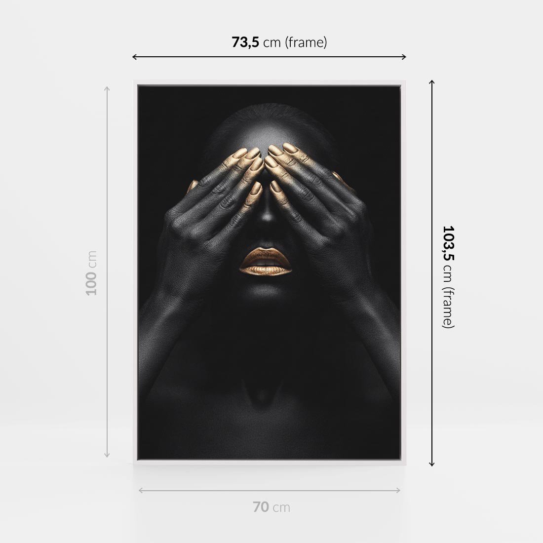 Obraz w ramie 70x100 - Złote Usta wyjątkowa subtelność - złote usta, złote palce - rama biała