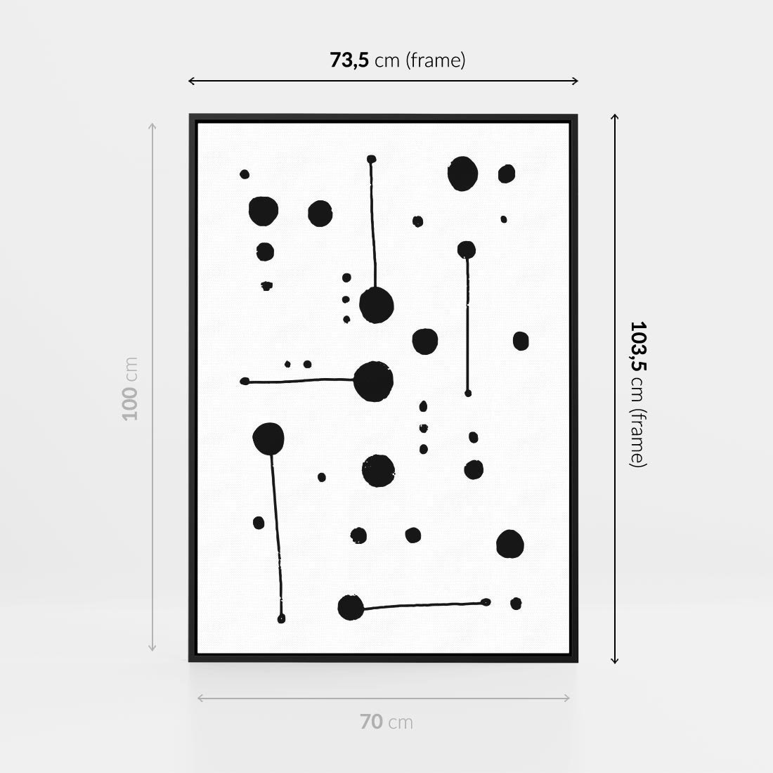 Nasz czarno-biały plakat to subtelne połączenie abstrakcji i minimalizmu, gdzie kropki i kreski tworzą misterną kompozycję. To delikatne wykorzystanie kontrastu, które zachwyca prostotą i elegancją. Ten plakat jest idealnym wyborem dla miłośników nowoczesnej sztuki, którzy cenią sobie wyrafinowany design i znaczeniowe detale.