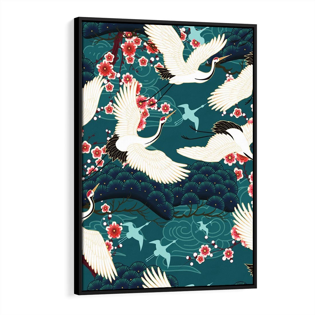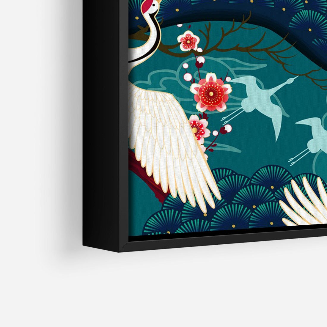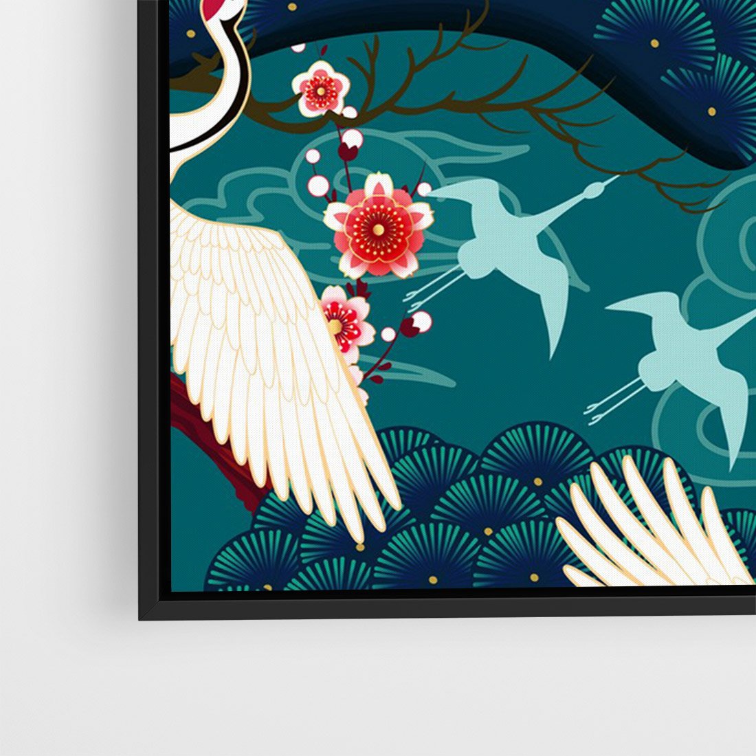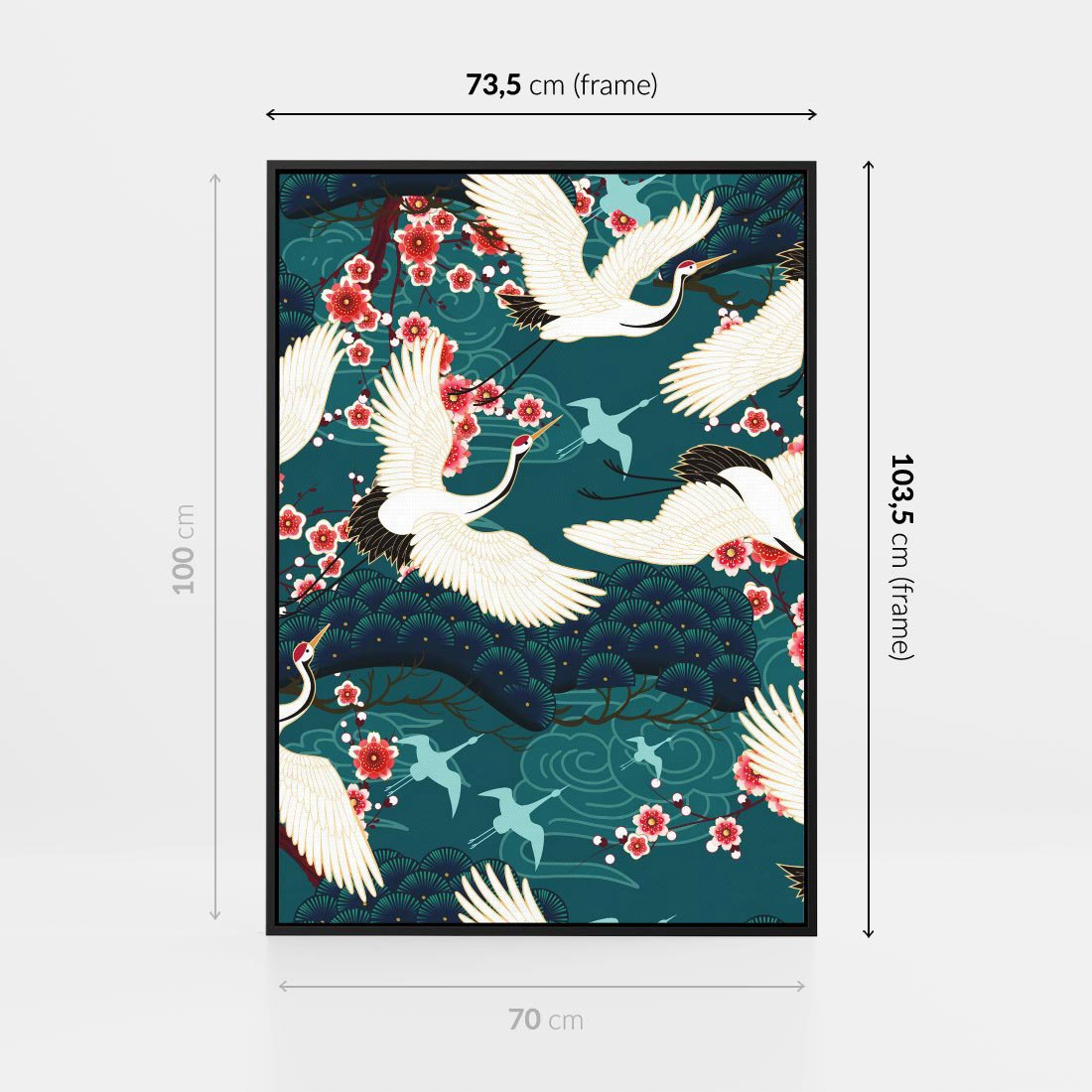 Obraz w ramie 70x100 - Żurawie Wachlarze - orientalne japońskie żurawie, grafika - rama czarna