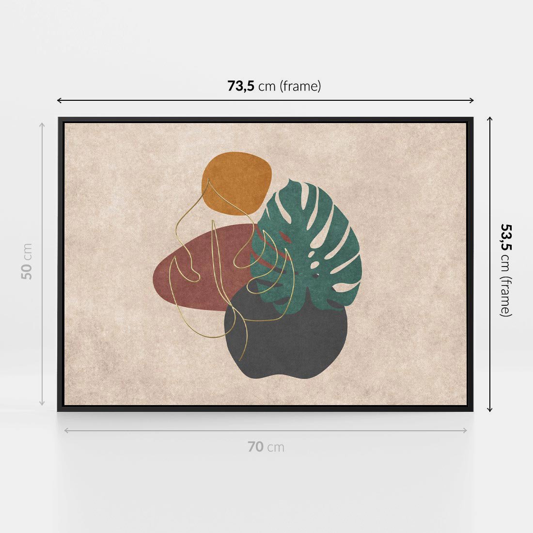Obraz w ramie 70x50 - Akwarelowa Magia Liści - grafika, styl mid century - rama czarna