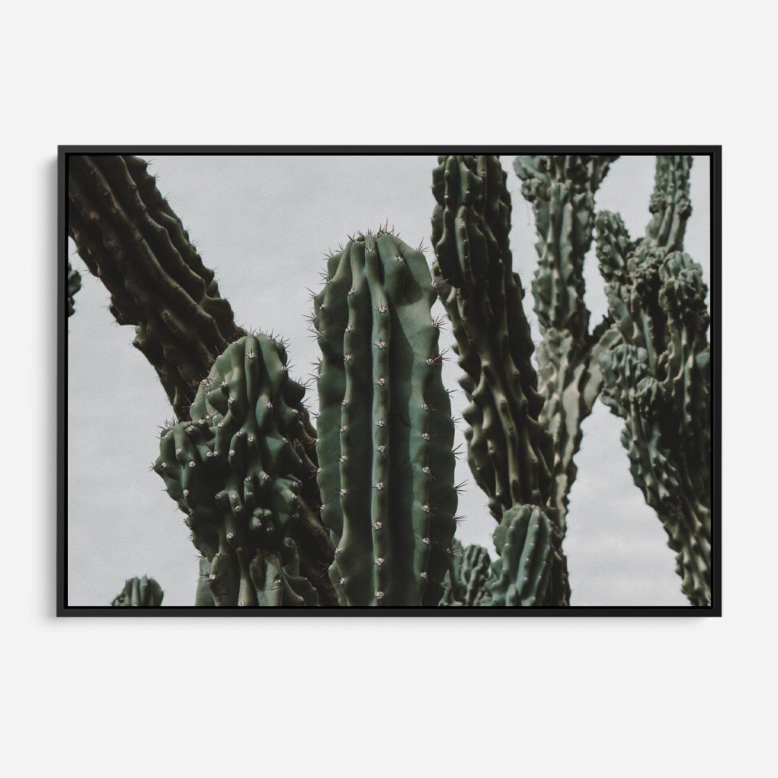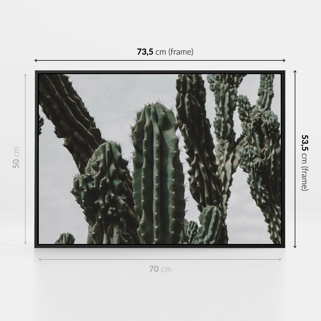 Obraz w ramie 70x50 - Boho oaza wśród kaktusów - kaktusy, pustynia - rama czarna