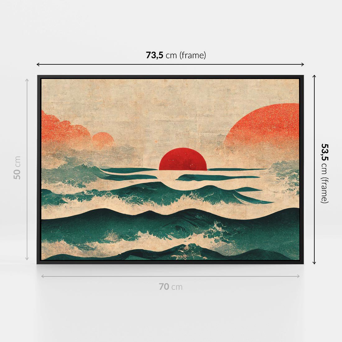 Obraz w ramie 70x50 - Czerwone Melodie - japońska sztuka, zachód słońca nad oceanem - rama czarna