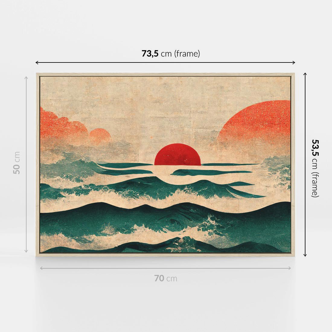 Obraz w ramie 70x50 - Czerwone Melodie - japońska sztuka, zachód słońca nad oceanem - rama drewno