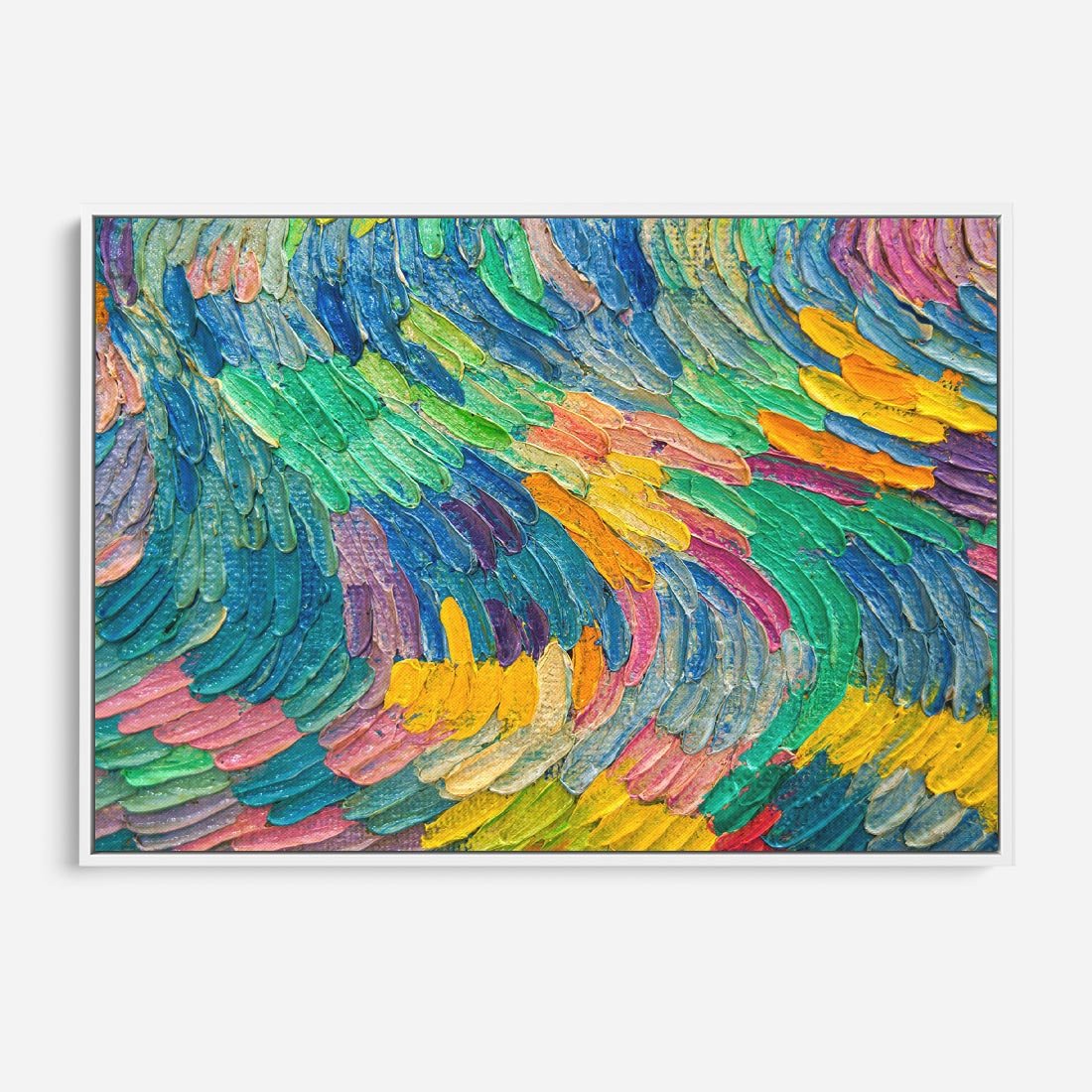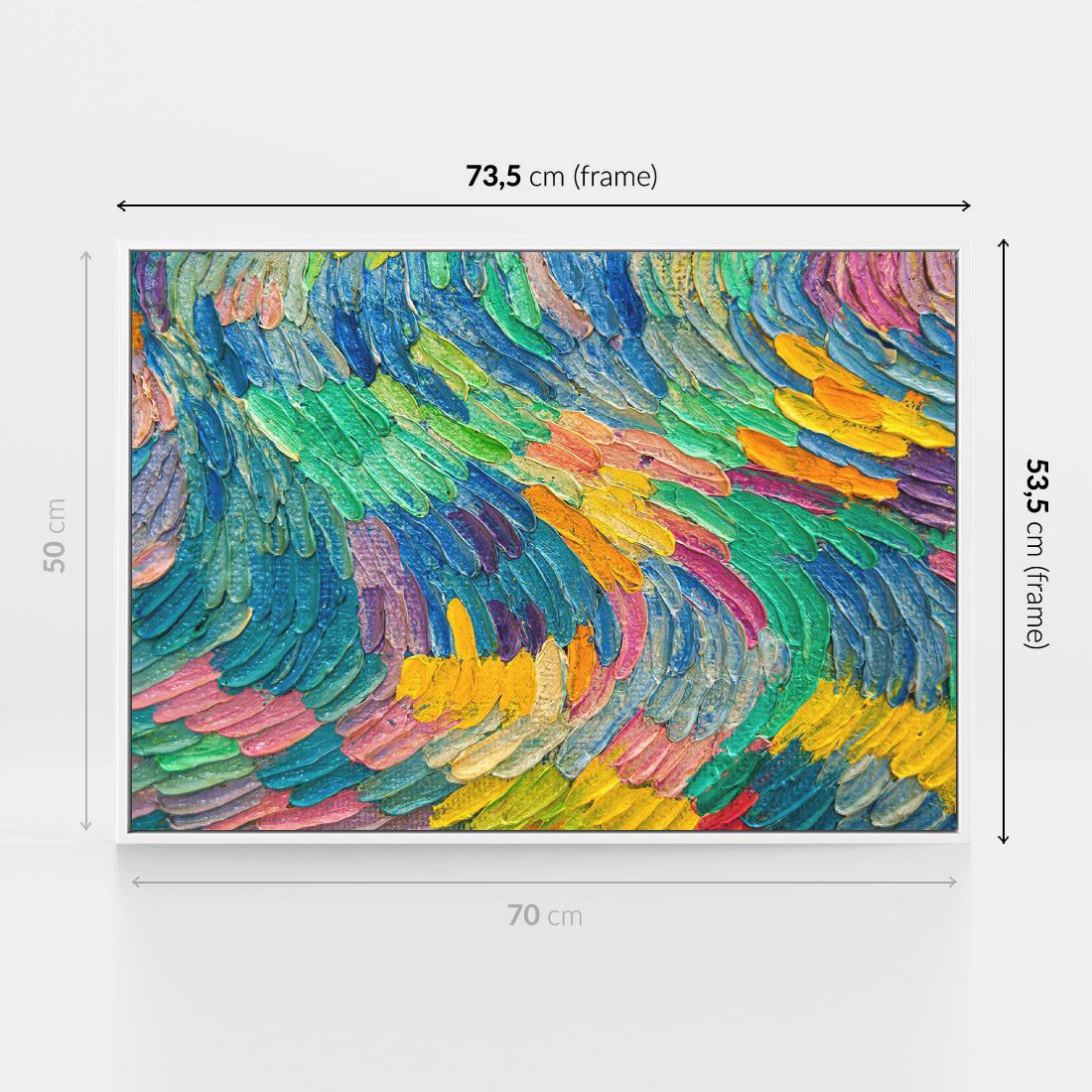 Obraz w ramie 70x50 - Egzotyczne Pióra - abstrakcyjne dzieło, farby olejne - rama biała