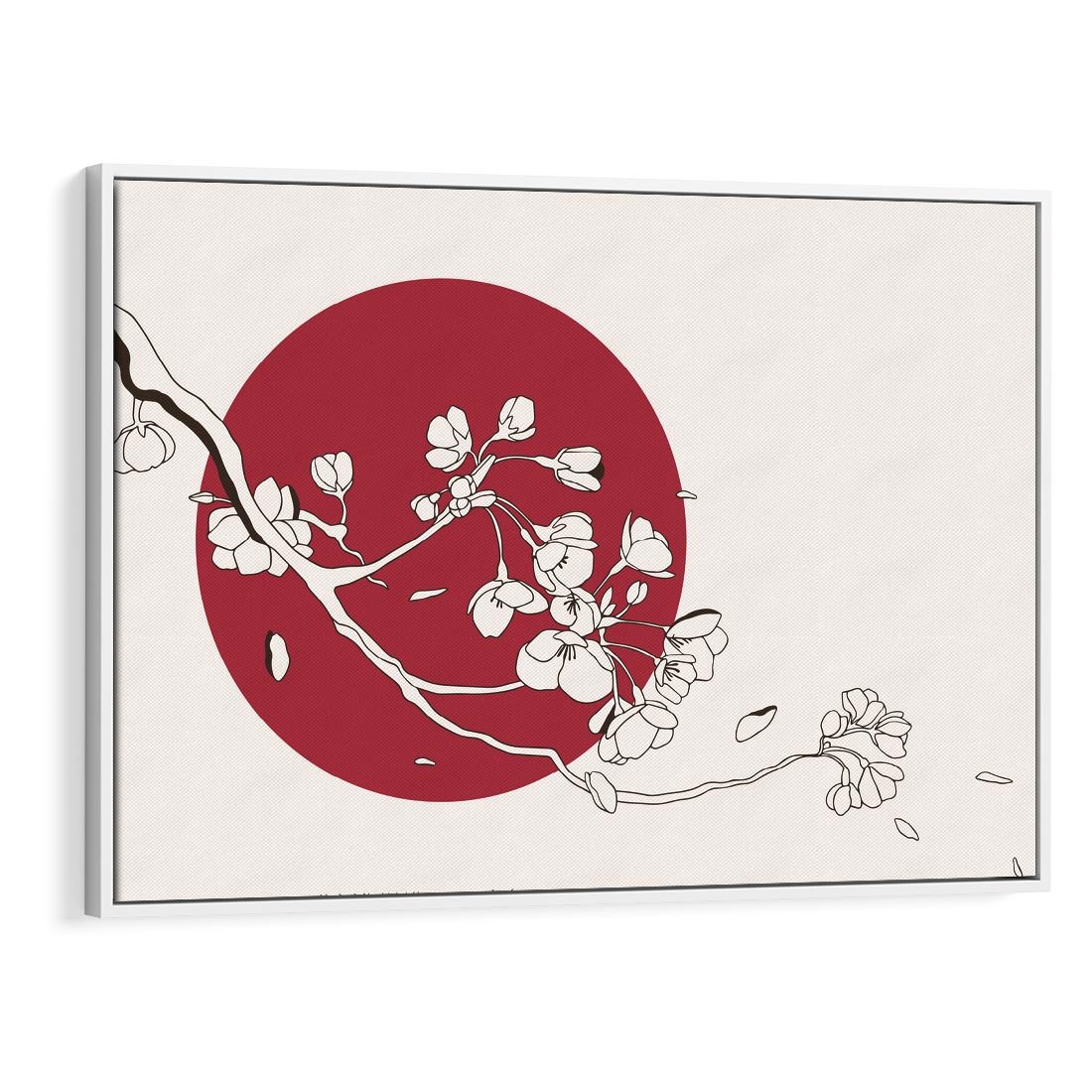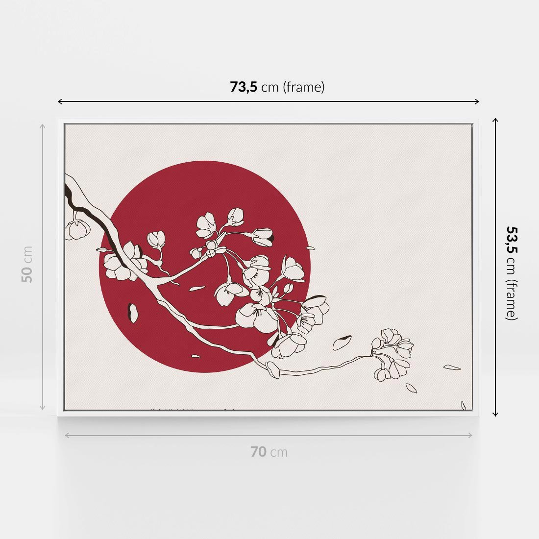Obraz w ramie 70x50 - Esencja Zen - kwiatnąca wiśnia, orientalna grafika - rama biała