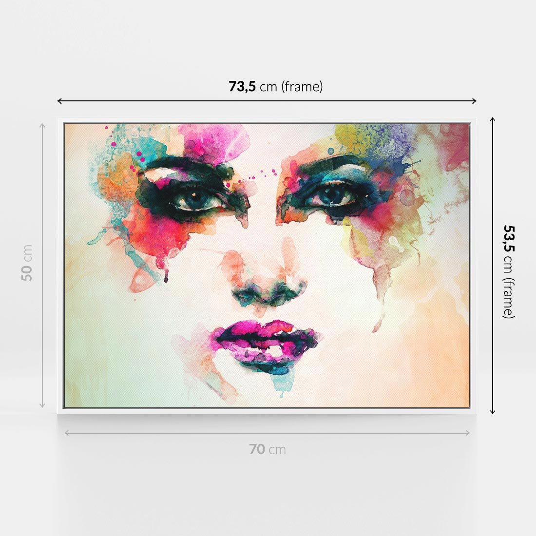 Obraz w ramie 70x50 - Eteryczna Głębia Dusz - portret twarz kobiety, wyraziste oczy - rama biała