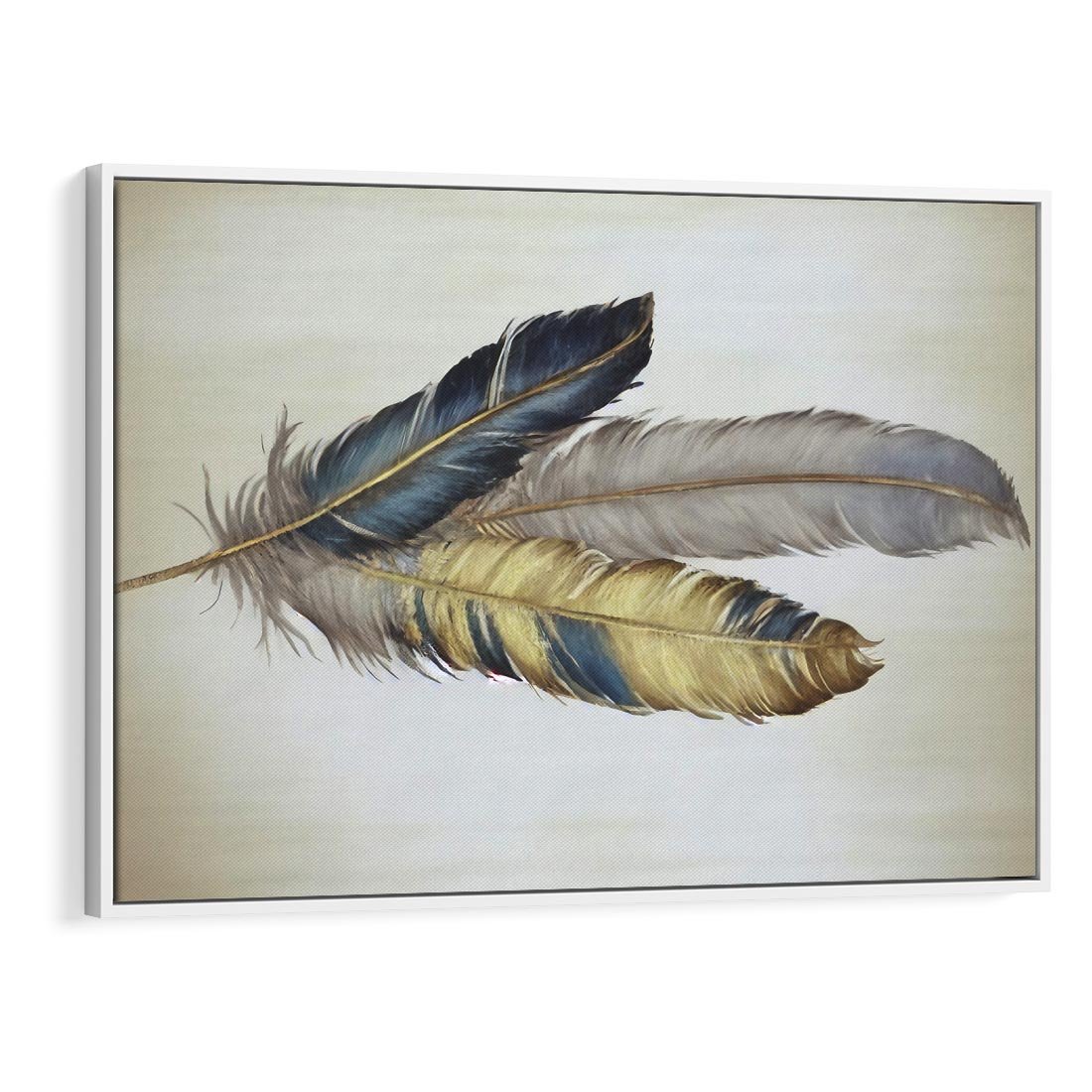 Obraz w ramie 70x50 - Granatowo-Złote Pióra - sztuka, granatowe i złote pióra - rama biała
