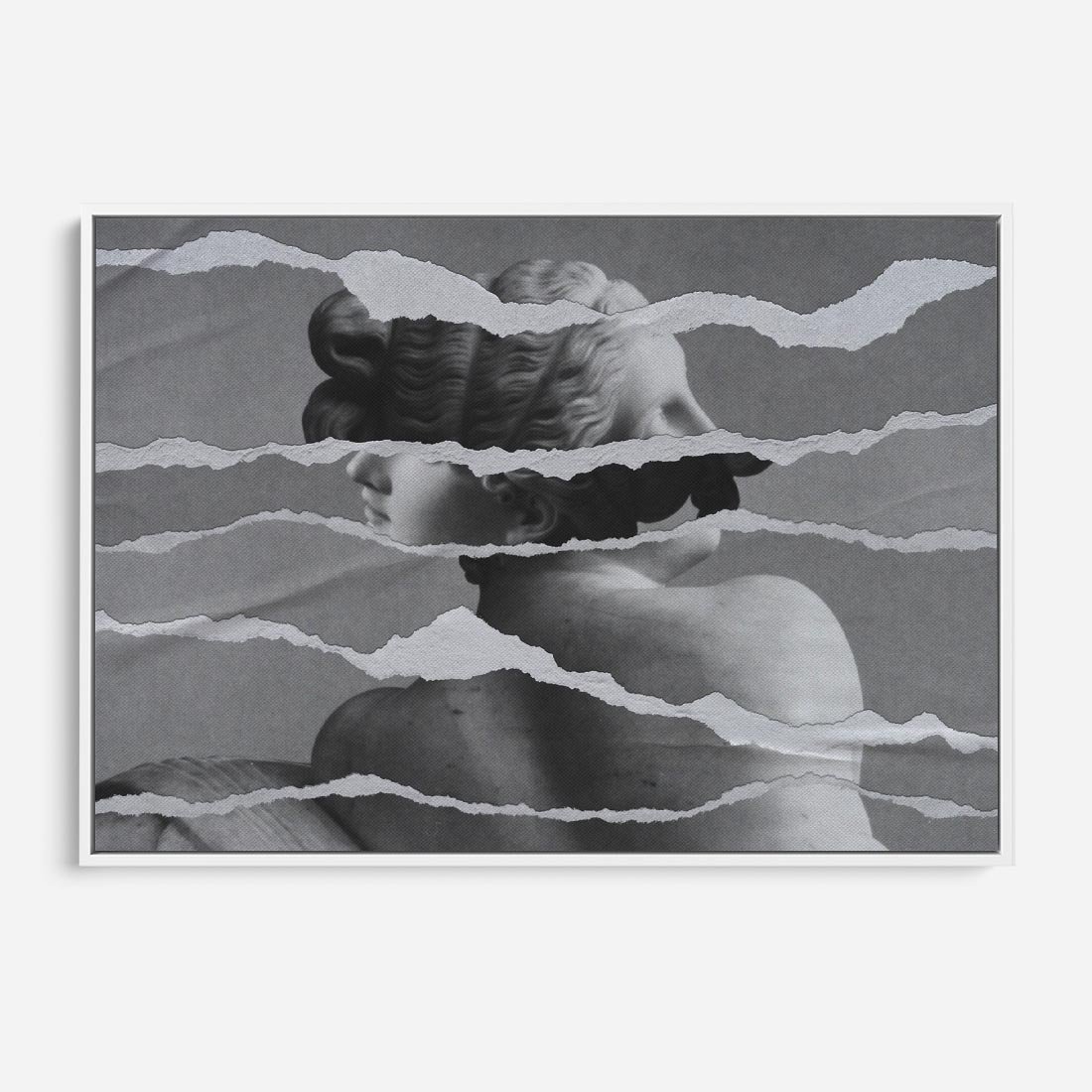 Ten unikalny obraz na płótnie łączy nowoczesność ze sztuką antyczną. Kolaż ze zdjęcia antycznej rzeźby tworzy wyjątkową i abstrakcyjną kompozycję, gdzie odcienie szarości dominują. To dzieło sztuki emanuje harmonią kontrastu między przeszłością a teraźniejszością, nadając Twojemu wnętrzu elegancki i nowoczesny wygląd.