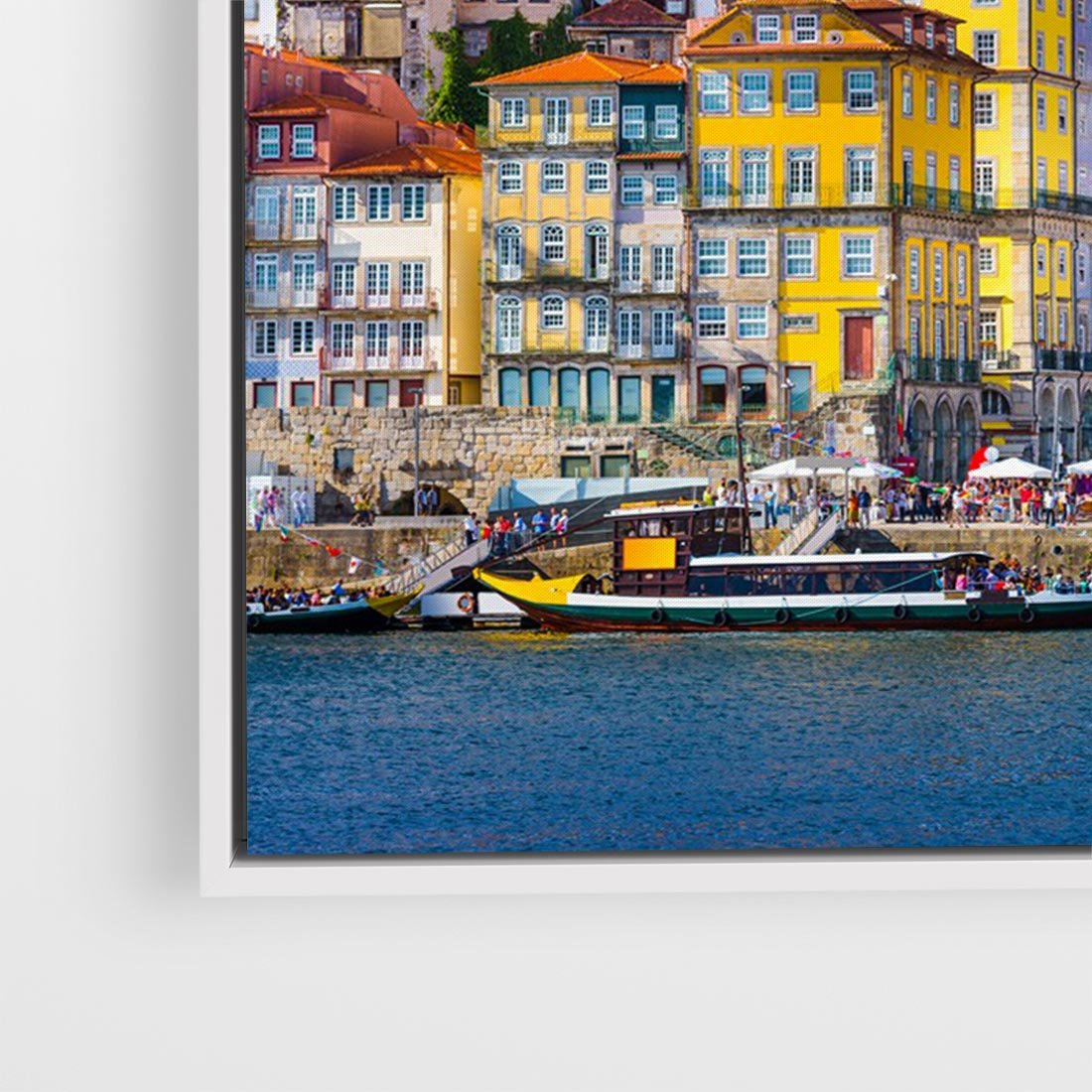 Obraz w ramie 70x50 - Kolorowa Przystań - nadmorskie miasto, kolorowe budynki - rama biała