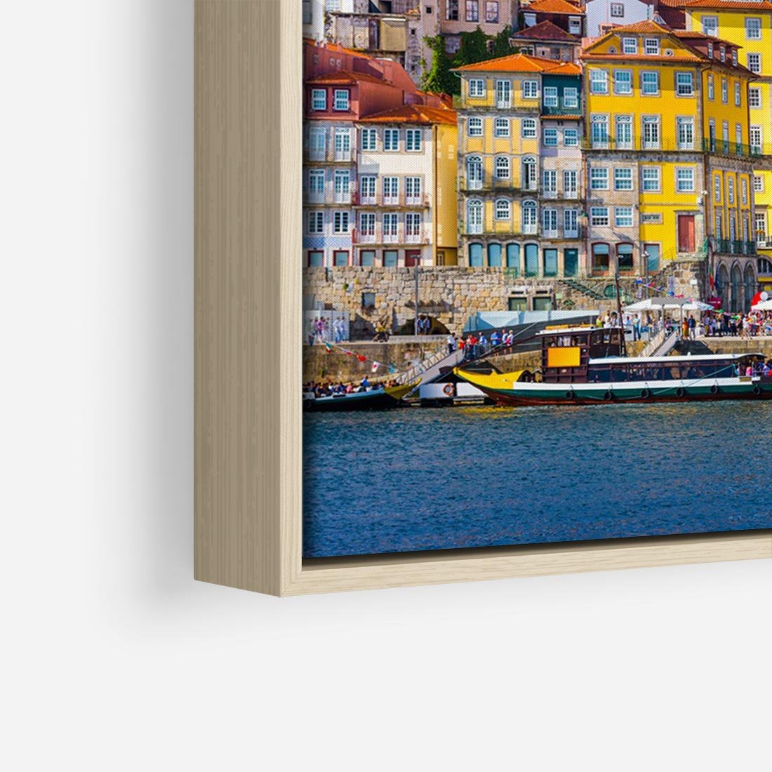 Obraz w ramie 70x50 - Kolorowa Przystań - nadmorskie miasto, kolorowe budynki - rama drewno