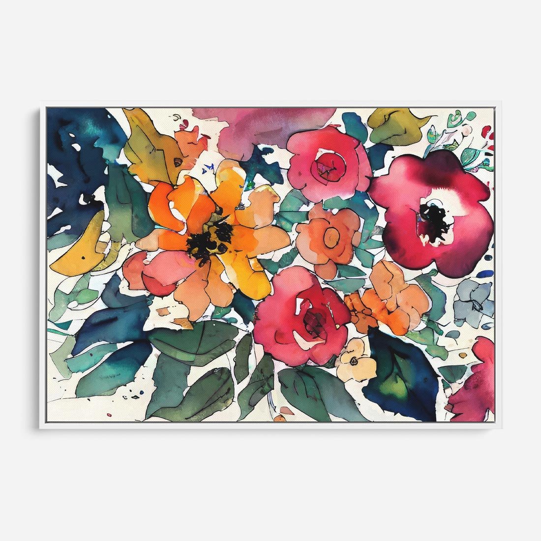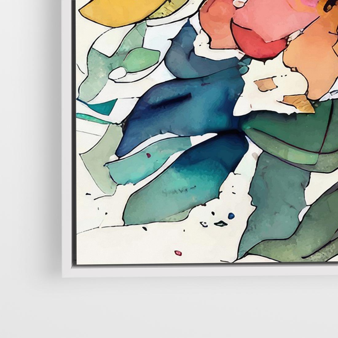 Obraz w ramie 70x50 - Kwiatowy Impuls Kolorów - abstrakcyjne kolorowe kwiaty, szkic - rama biała