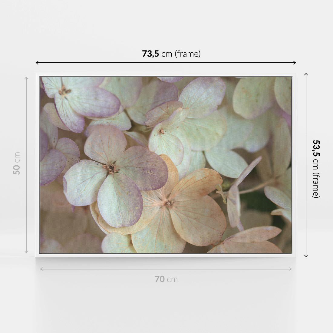 Obraz w ramie 70x50 - Kwiatowy taniec - kwiaty, hortensje - rama biała