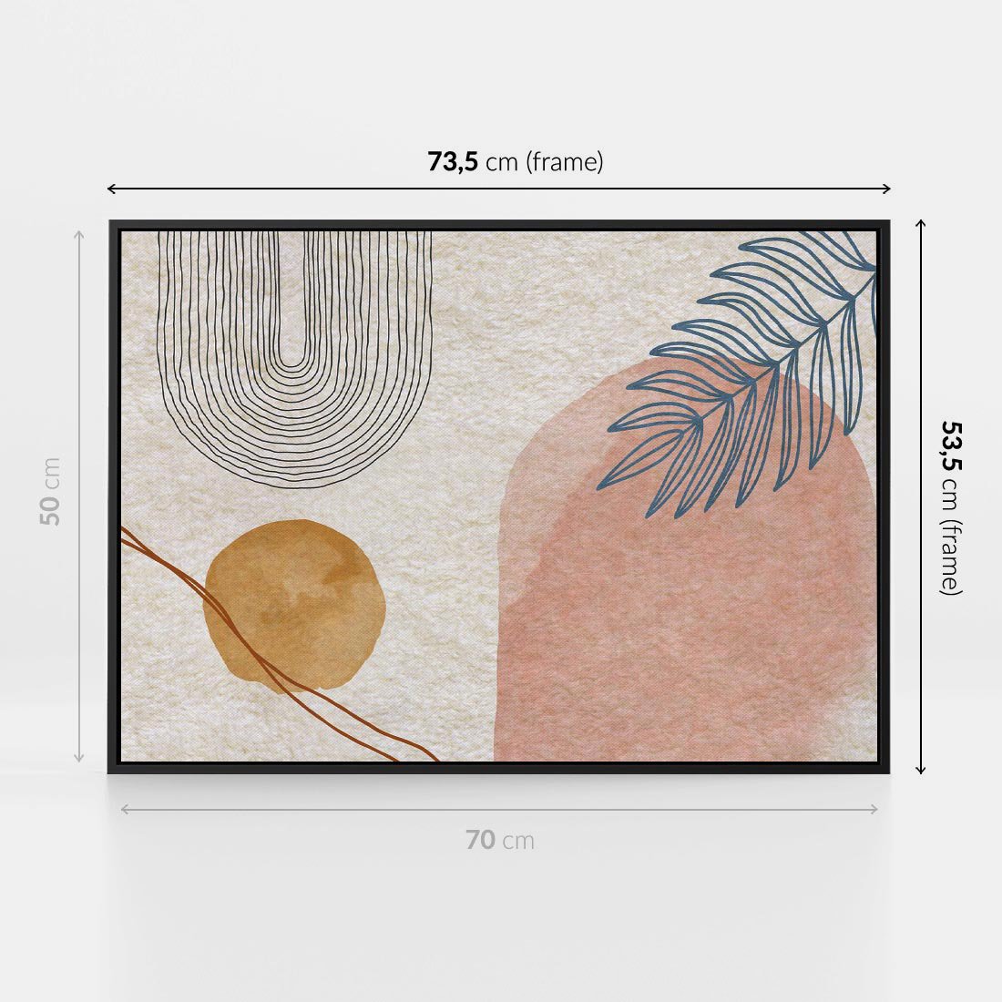 Obraz w ramie 70x50 - Liście i Geometrie - nowoczesny, akwarelowe plamy - rama czarna
