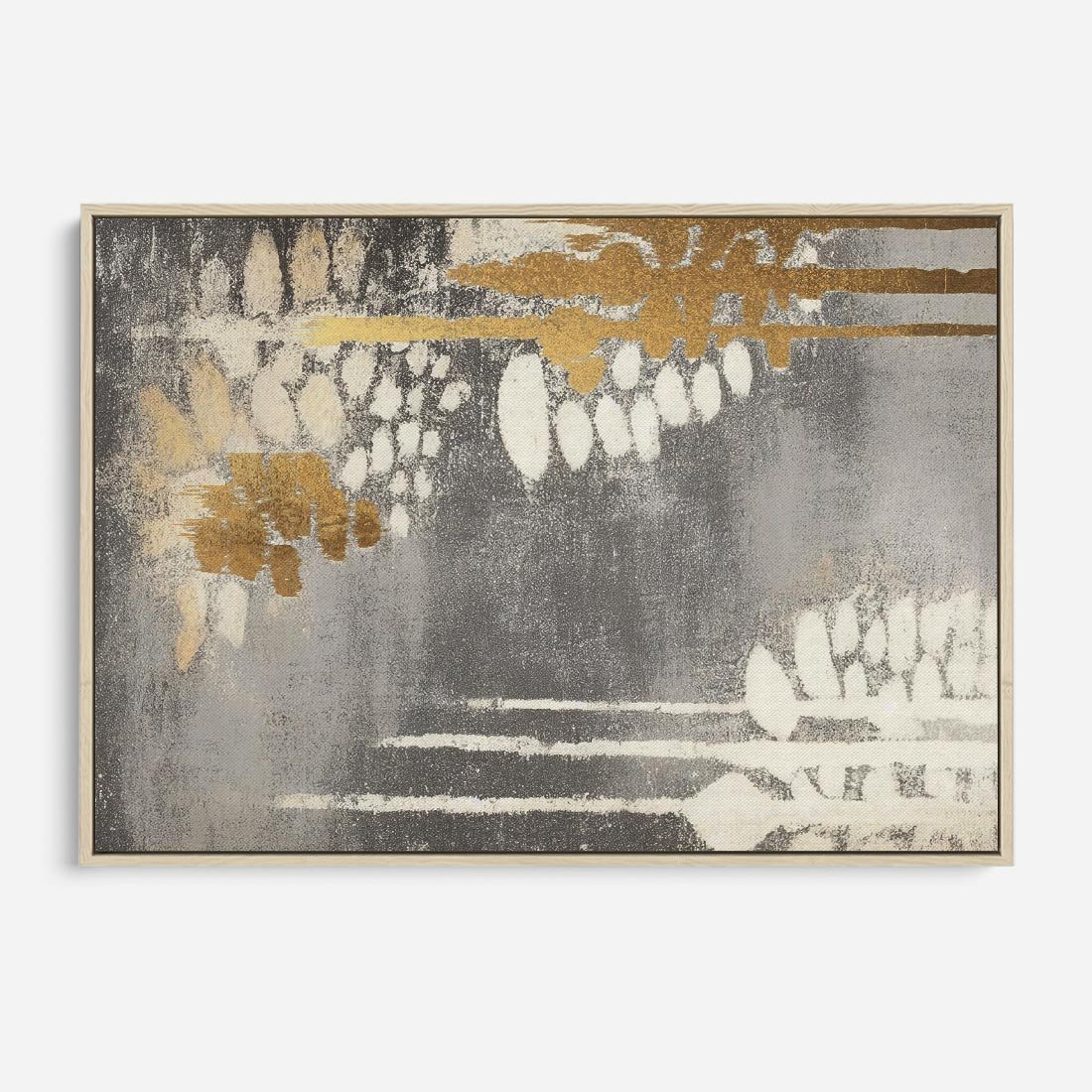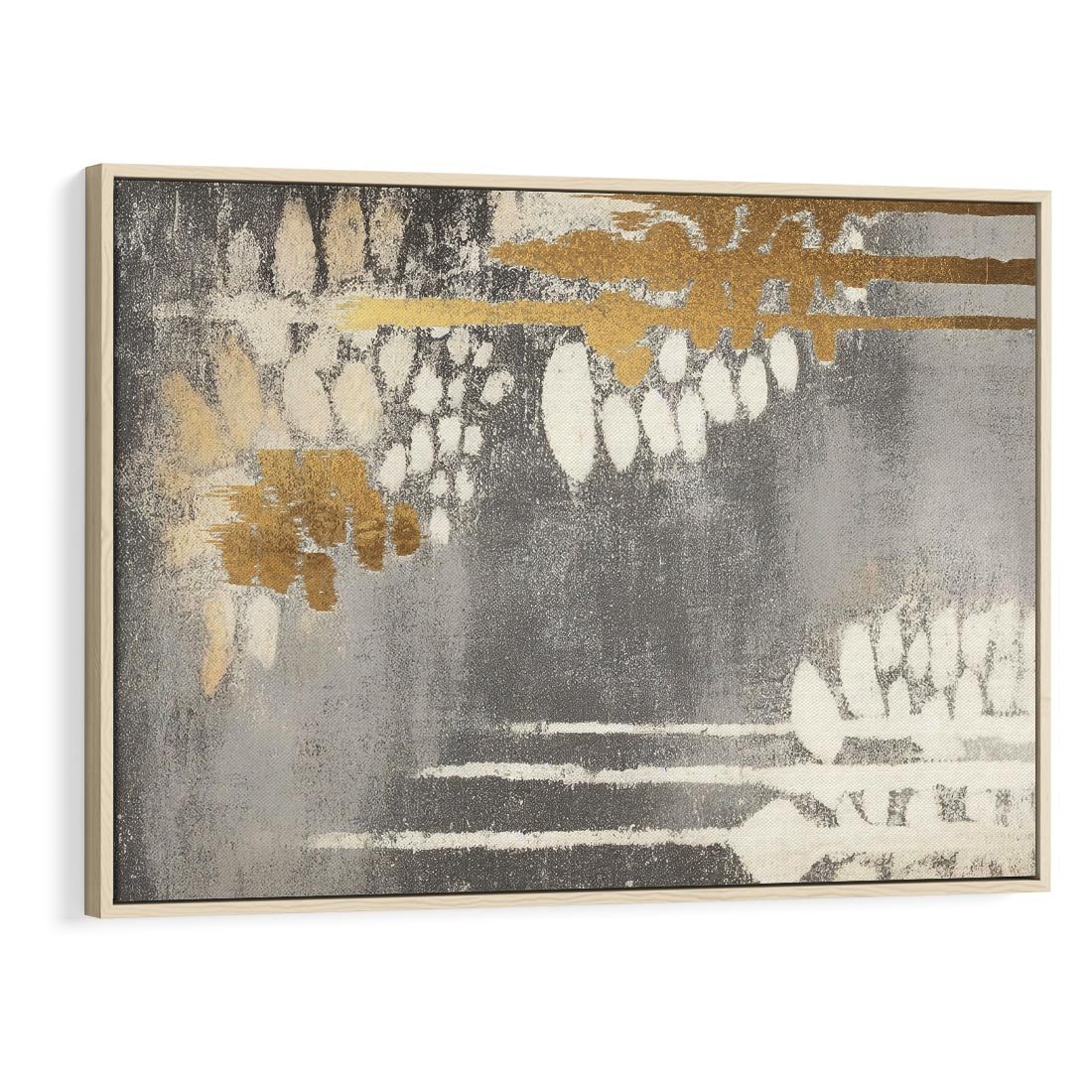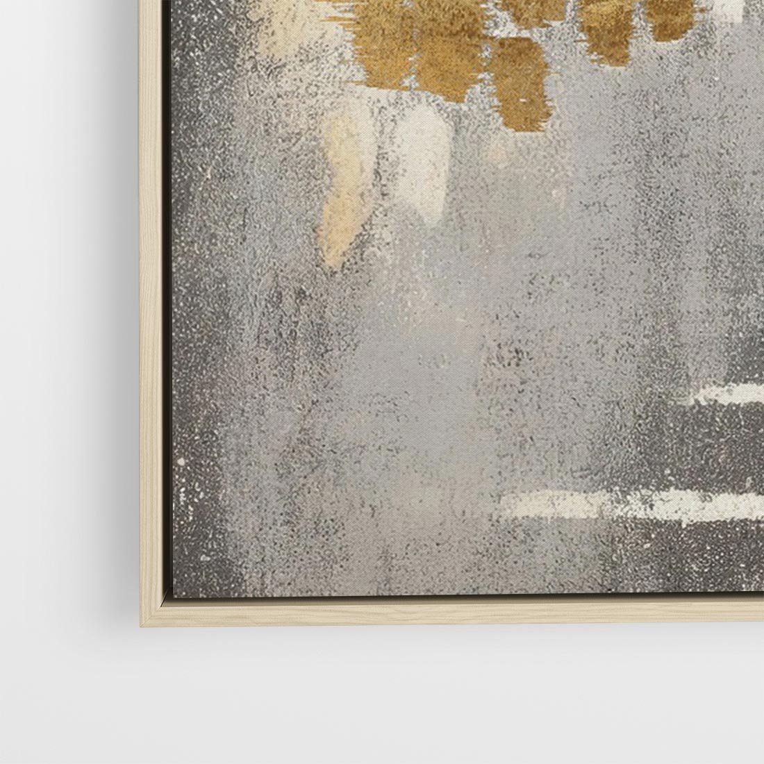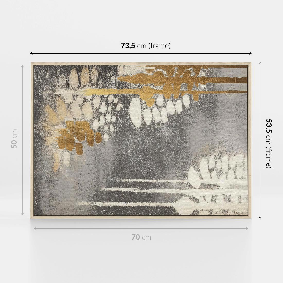 Odkryj fascynujący obraz w stylu vintage, gdzie abstrakcyjne plamy i linie łączą się na szarym teksturalnym tle. Złote przetarcia dodają mu klasy. Dla miłośników sztuki i estetyki loftowej, obraz ten wprowadzi wyjątkową atmosferę i artystyczny klimat do przestrzeni. Doskonały akcent dla wnętrz o charakterze industrialnym i nostalgicznej elegancji.