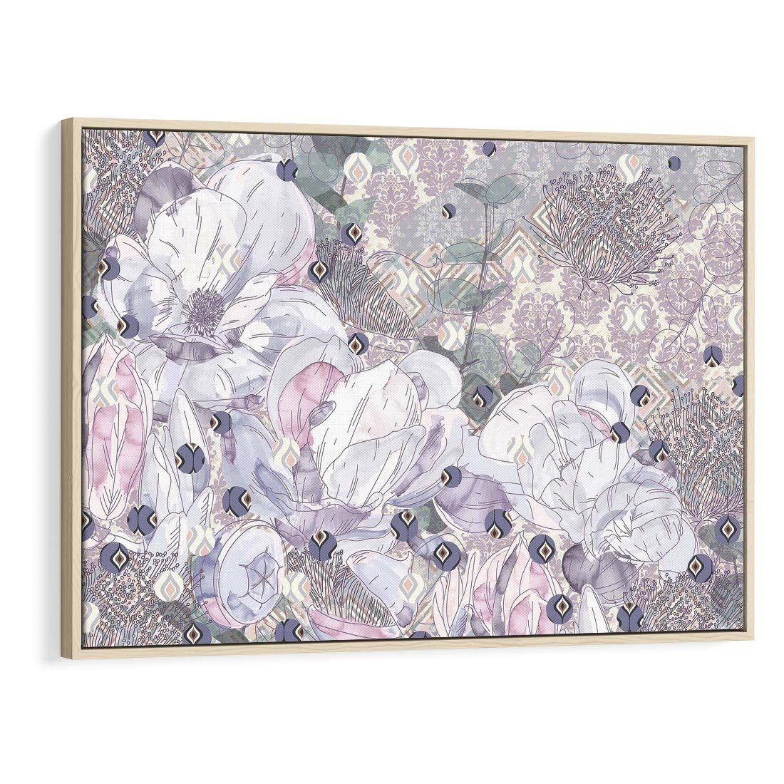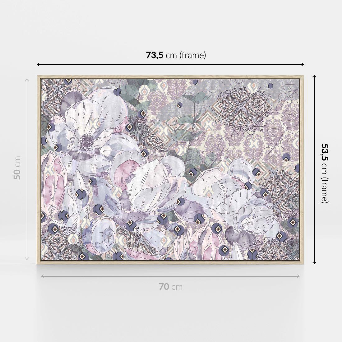 Obraz w ramie 70x50 - Malowane oddechy istnienia - pomieszane tekstury, kwiatowe elementy - rama drewno