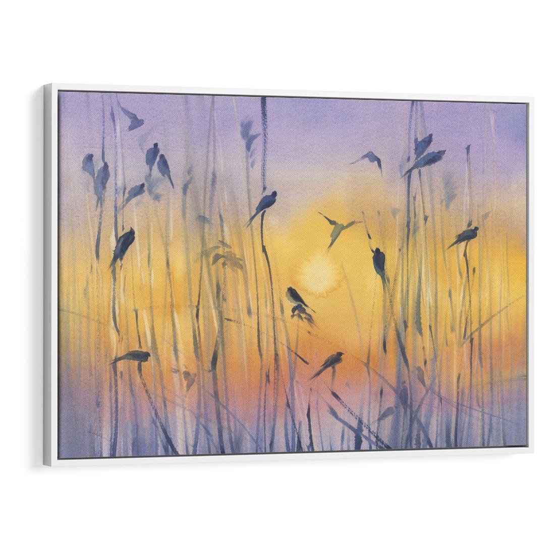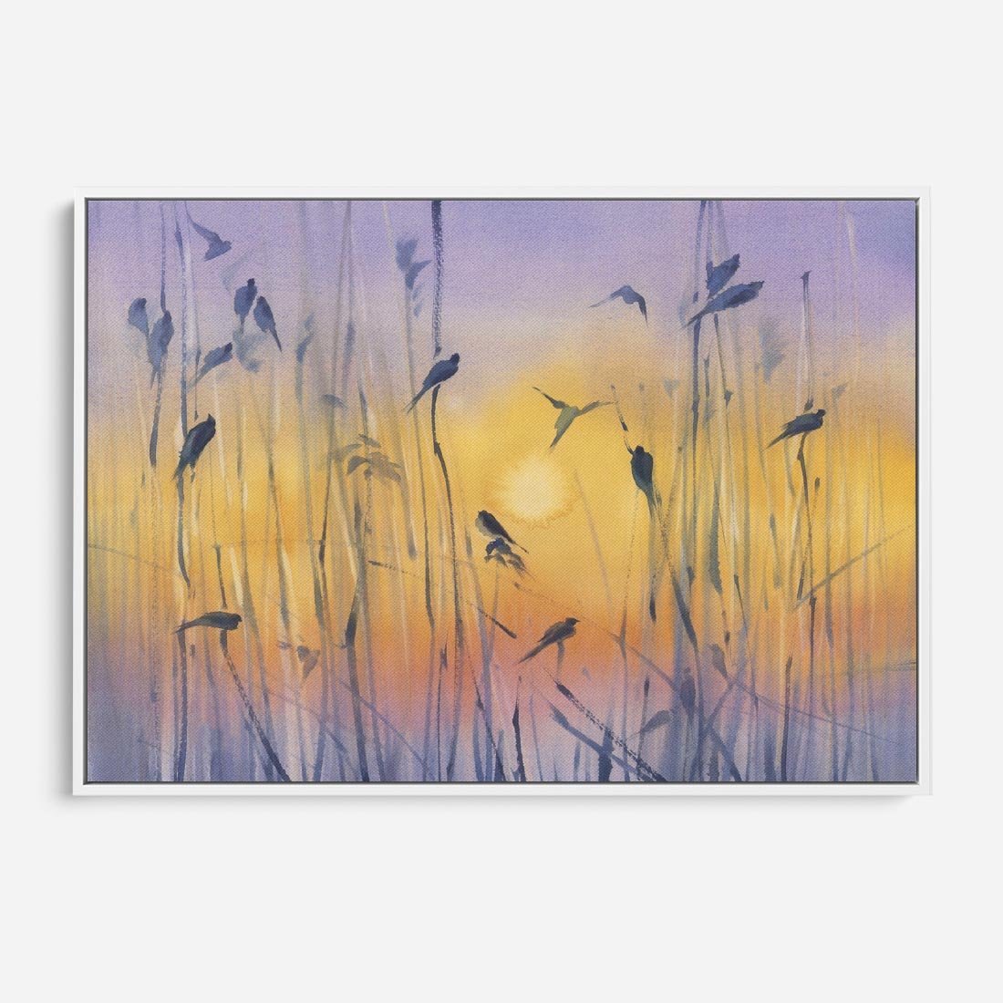 Ta akwarela ukazuje piękny wschód słońca w szuwarach, gdzie trawy ukrywają się w mglistym poranku. Ptaki siedzące na tataraku dodają uroku temu pejzażowi. Mistyka Poranka nad Szuwarami ożywia fioletowo-złote odcienie, tworząc aurę tajemniczości i spokoju, która przenosi nas w chwilę magicznego i naturalnego piękna.