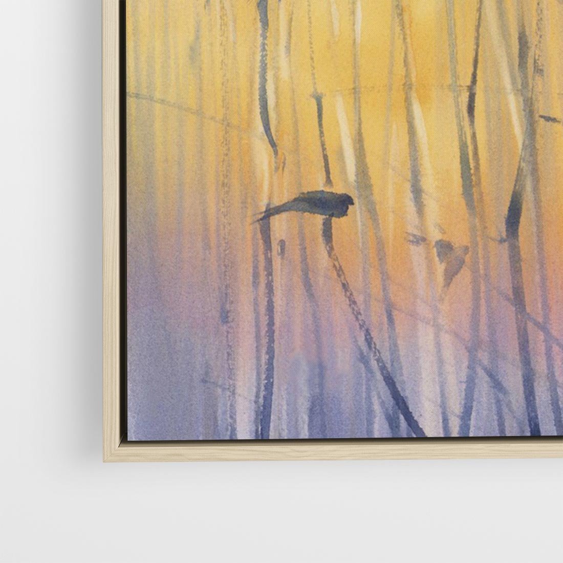 Ta akwarela ukazuje piękny wschód słońca w szuwarach, gdzie trawy ukrywają się w mglistym poranku. Ptaki siedzące na tataraku dodają uroku temu pejzażowi. Mistyka Poranka nad Szuwarami ożywia fioletowo-złote odcienie, tworząc aurę tajemniczości i spokoju, która przenosi nas w chwilę magicznego i naturalnego piękna.
