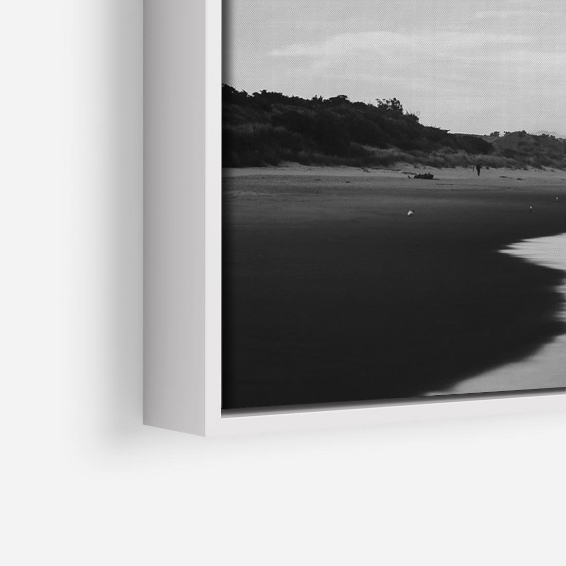 To czarno-białe zdjęcie oddaje urok nadmorskiego klimatu. Widok plaży i morza, utrwalony w monochromatycznej tonacji, nadaje temu obrazowi nostalgii i atmosfery spokoju. To idealna dekoracja dla tych, którzy kochają nadmorskie widoki i chcą przenieść kawałek plażowej atmosfery do swojego wnętrza.