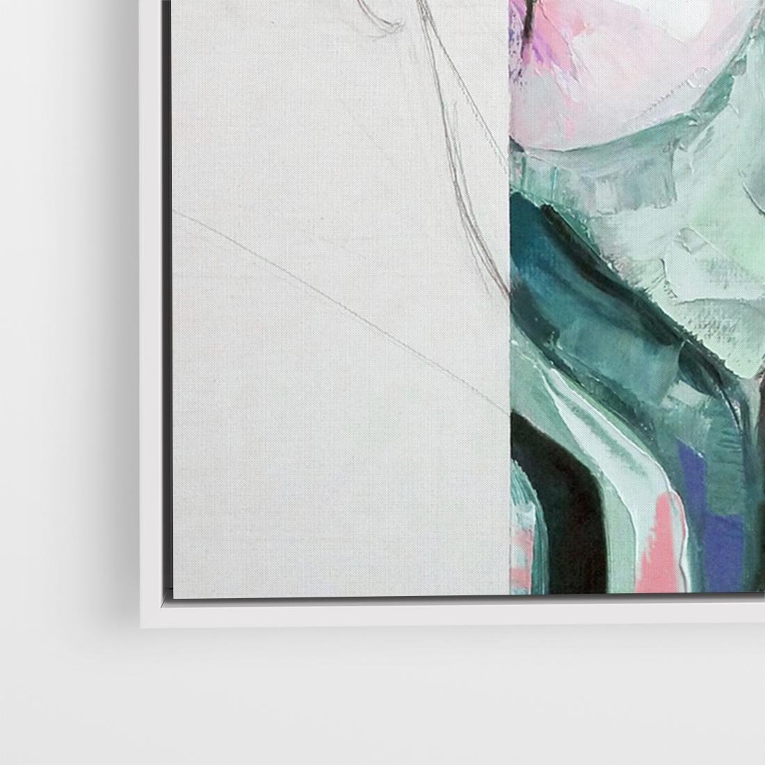 Obraz w ramie 70x50 - Niezakończona Piękność - abstrakcyjny obraz olejny, portret kobiety - rama biała