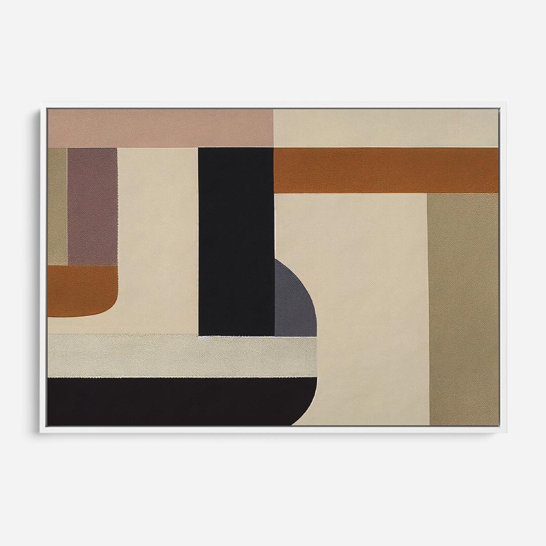 To nowoczesny obraz, w którym dominują geometryczne pasy w odcieniach beżu, brązu i camel. Jego minimalistyczny design i wyrafinowany styl doskonale wpasują się w nowoczesne wnętrza. Geometryczne kompozycje tworzą harmonijne połączenie prostoty i elegancji, wzbogacając przestrzeń swoim subtelnie ziemistym wyglądem.