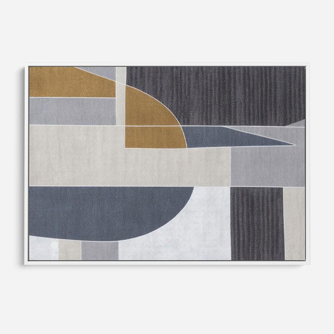 Odkryj wyjątkowy obraz, który prezentuje graficzne kształty i geometryczne wzory w stonowanych odcieniach szarości i beżu. To dzieło sztuki doskonale wpisujące się w nowoczesne wnętrza, ale również świetnie harmonizujące z klasyką. Obraz ten zachwyci miłośników sztuki poszukujących eleganckiej dekoracji do swoich przestrzeni.