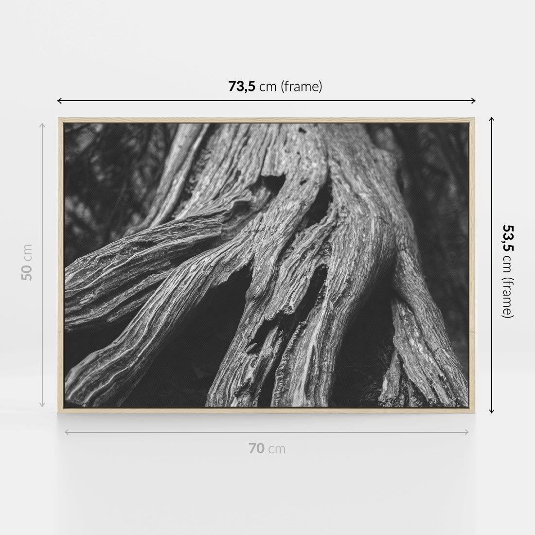 Obraz w ramie 70x50 - Siła Natury - czarno biała fotografia, korzenie wielkiego drzewa - rama drewno
