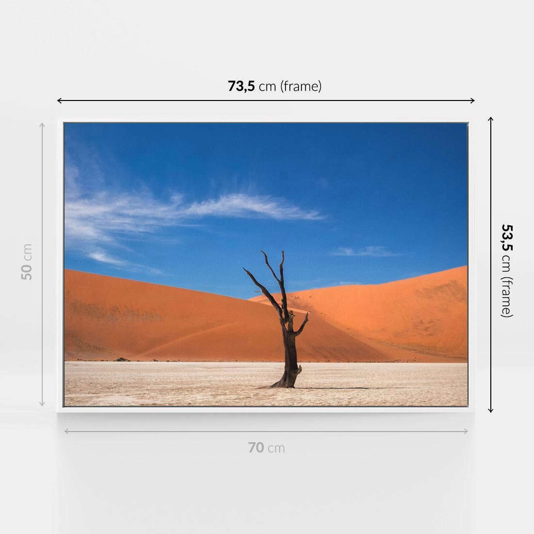 Poczuj magię pustyni i suche drzewo, odbijające słońce, za pomocą tego obrazu. Dodaj do swojego wnętrza unikalny element natury i ożyw przestrzeń.